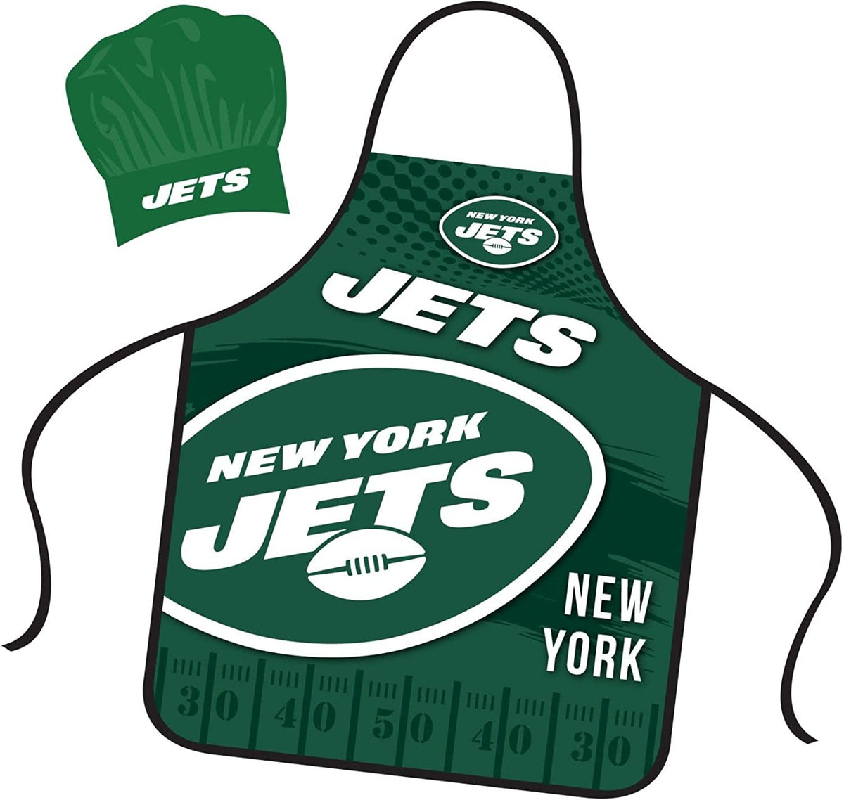 New York Jets Apron Chef Hat Set Full Color Universal Size Tie Back Grilling Tailgate BBQ Cooking Host
