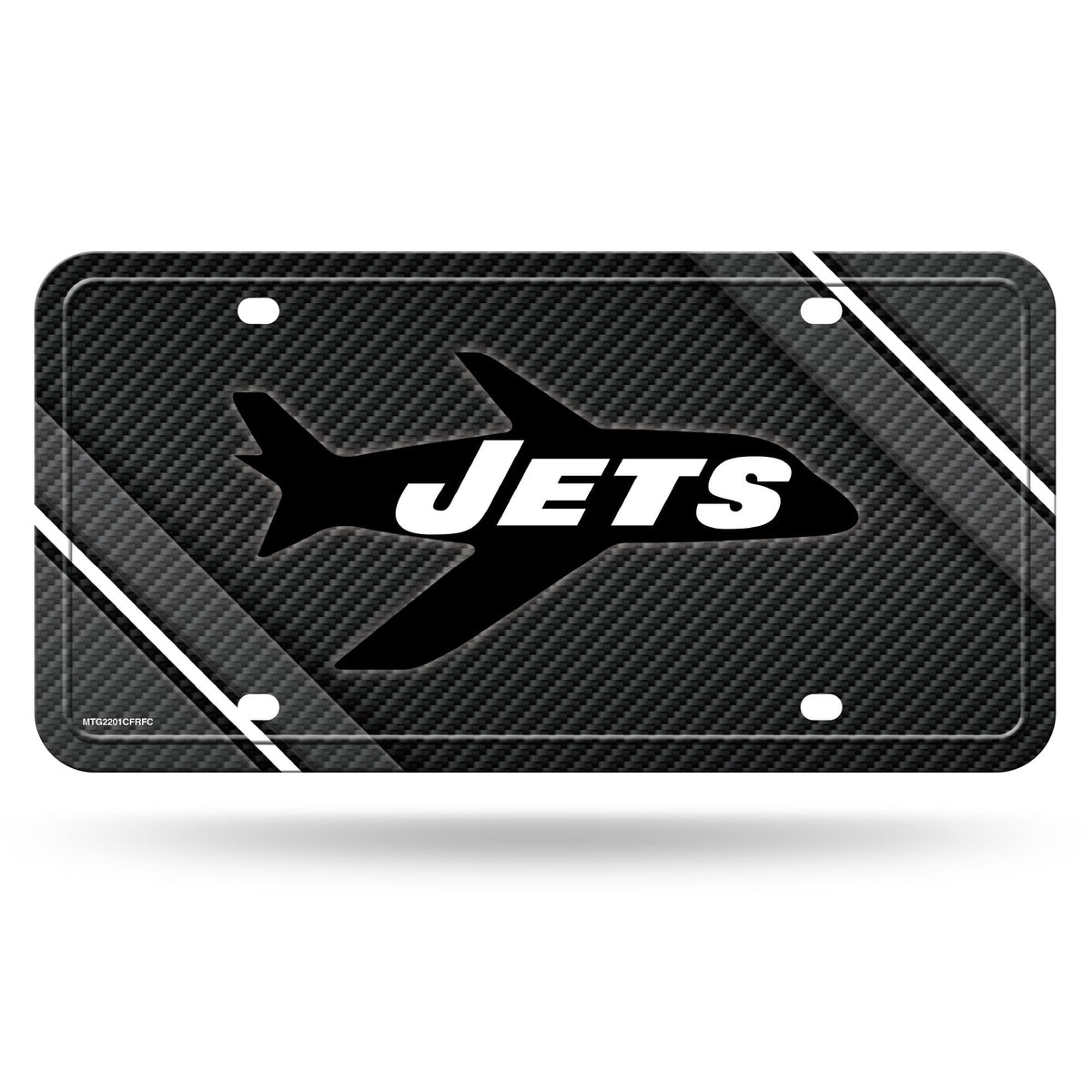 New York Jets Premium Metal Auto Tag License Plate, Retro Logo, Carbon Fiber Design Background, 6x12 Inch, Pre-Drilled Holes, Officially Licensed
