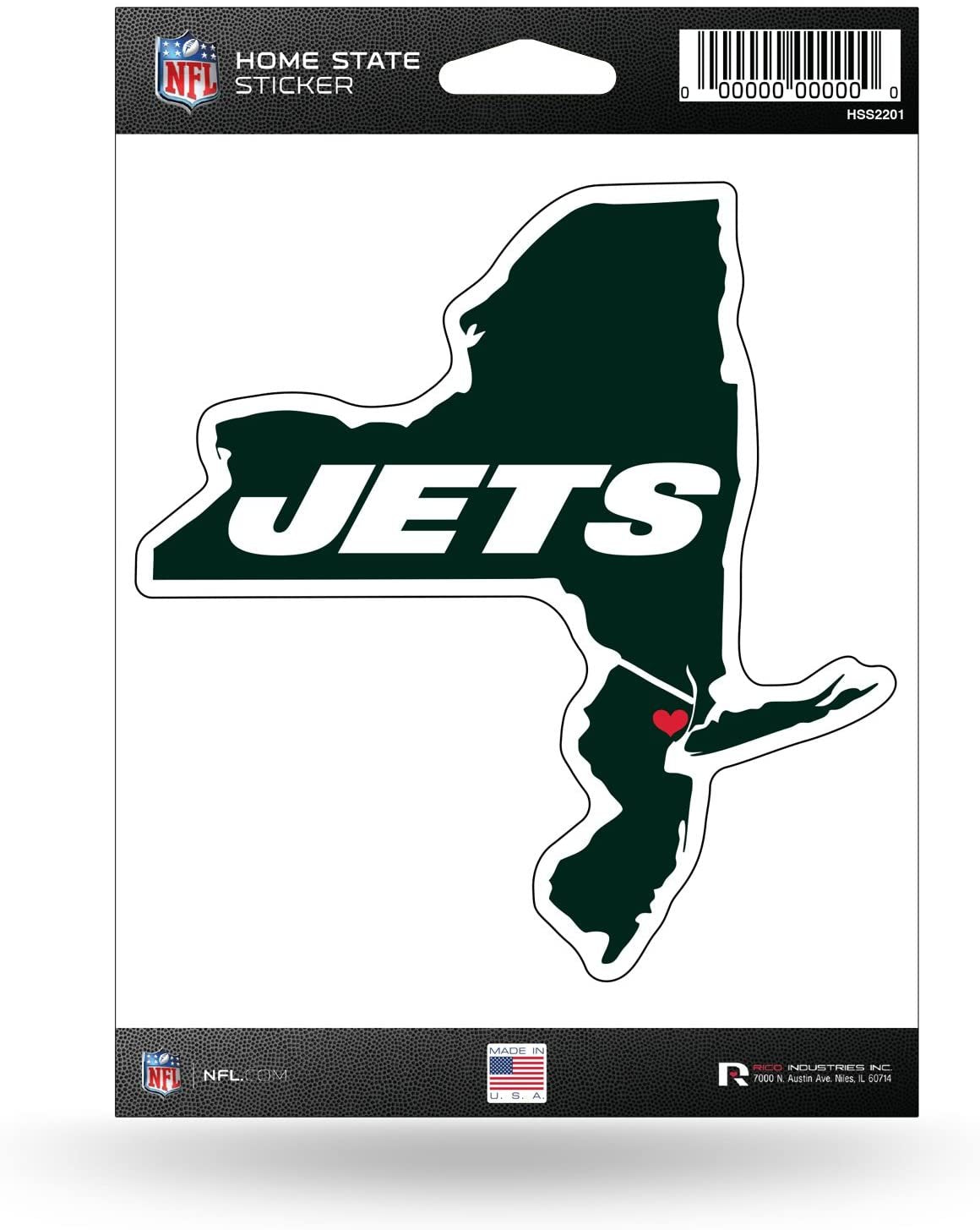 New York Jets 5 Inch Sticker Decal, Home State Design, Flat Vinyl, Full Adhesive Backing