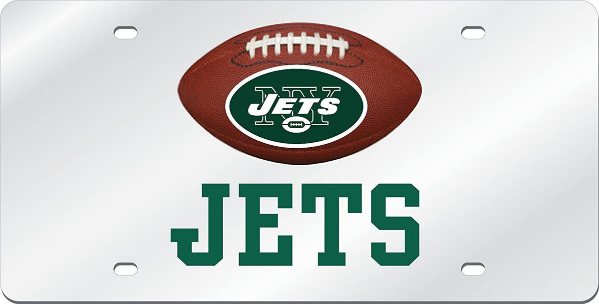 New York Jets Premium Laser Tag License Plate, Mirrored Acrylic, Football Cut Out Design, 6x12 Inch
