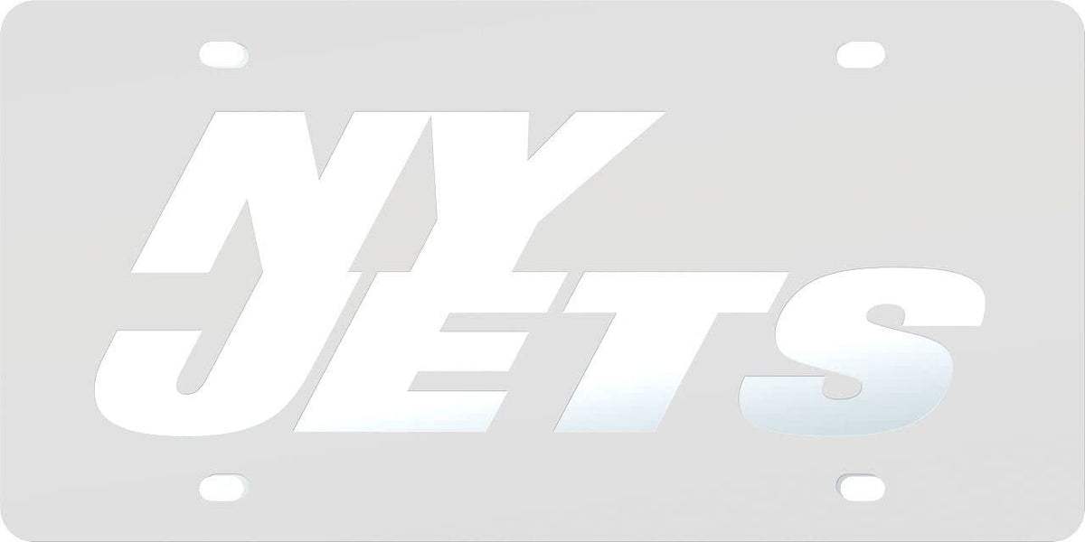 New York Jets Premium Laser Cut Tag License Plate, Mirrored Acrylic, Frost Design, 6x12 Inch
