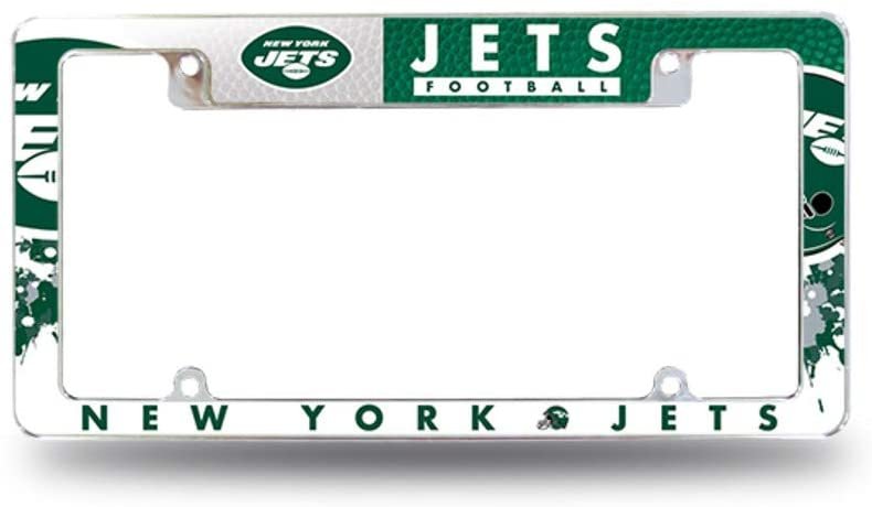 New York Jets Metal License Plate Frame Tag Cover 12x6 All Over Design EZ View