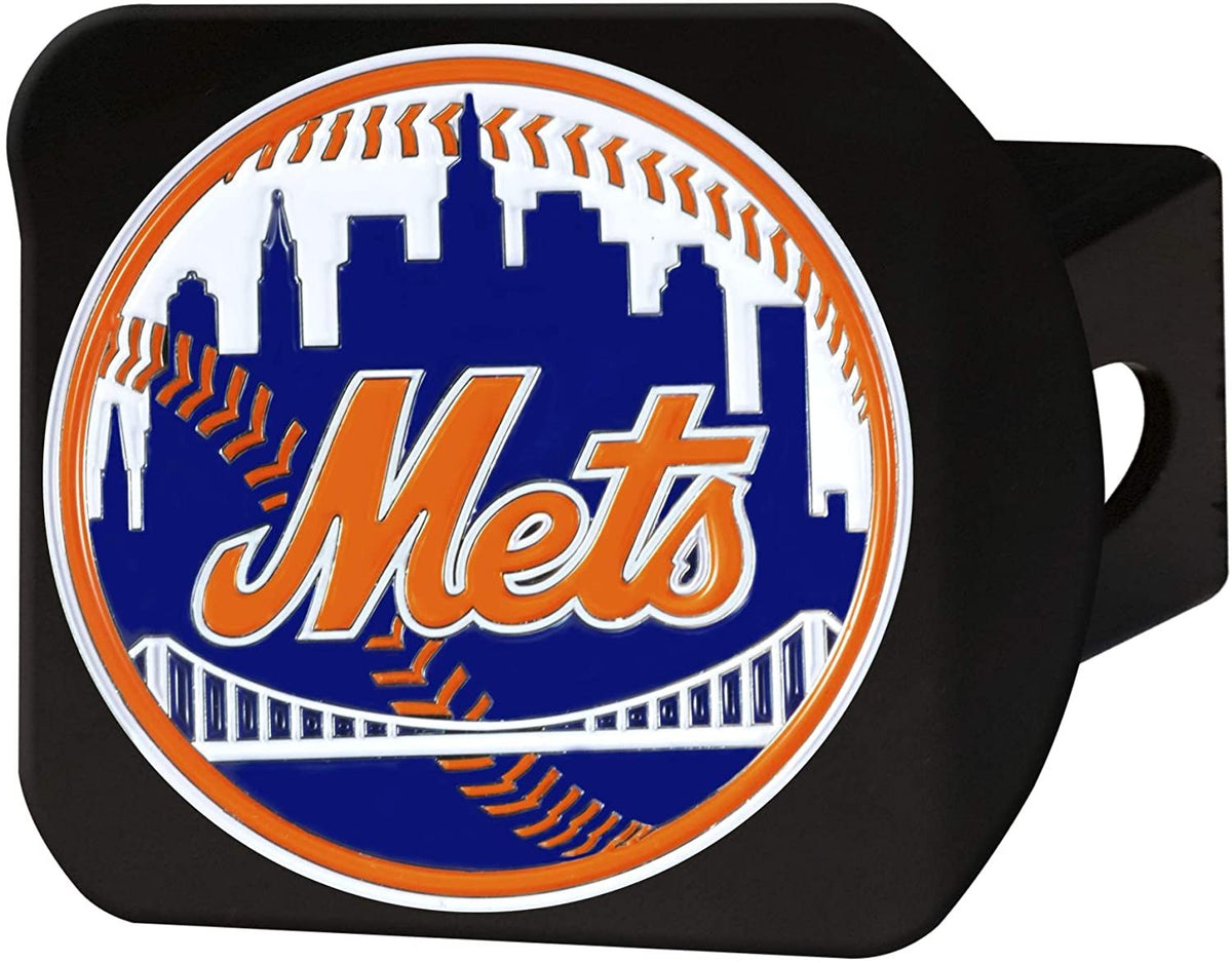 New York Mets Solid Metal Black Hitch Cover with Color Metal Emblem 2 Inch Square Type III