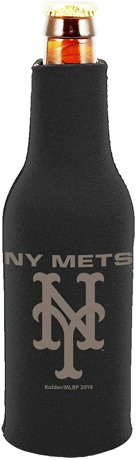 New York Mets 2-Pack Tonal Black Design Zipper Bottle Neoprene Beverage Insulator Holder Baseball