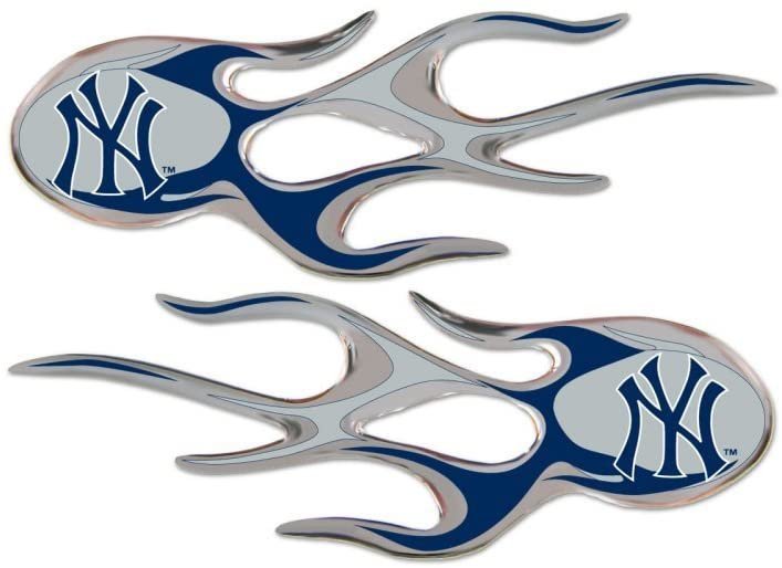 New York Yankees Pair of Decal Sticker Emblem, Air Puffed Raised, Micro Flame Design, Full Adhesive Backing, 2x5 Inch Each
