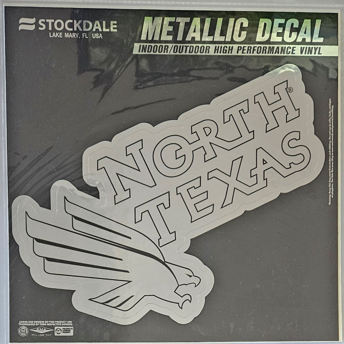 University of North Texas Mean Green 6 Inch Decal Sticker, Metallic Chrome Shimmer Design