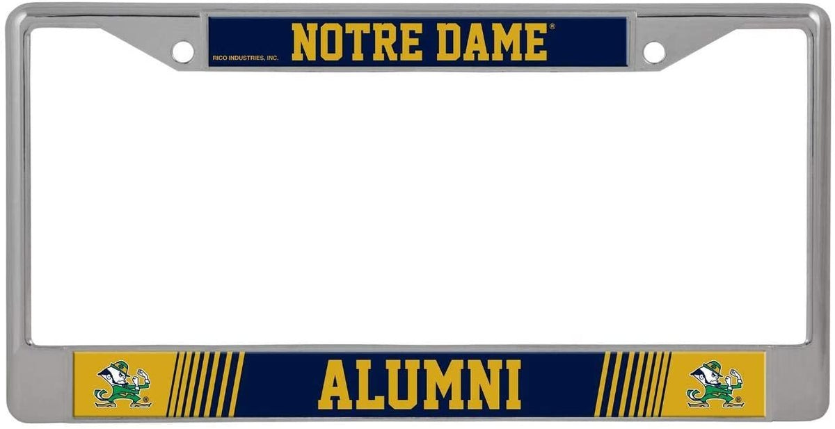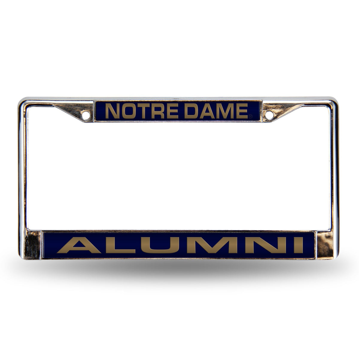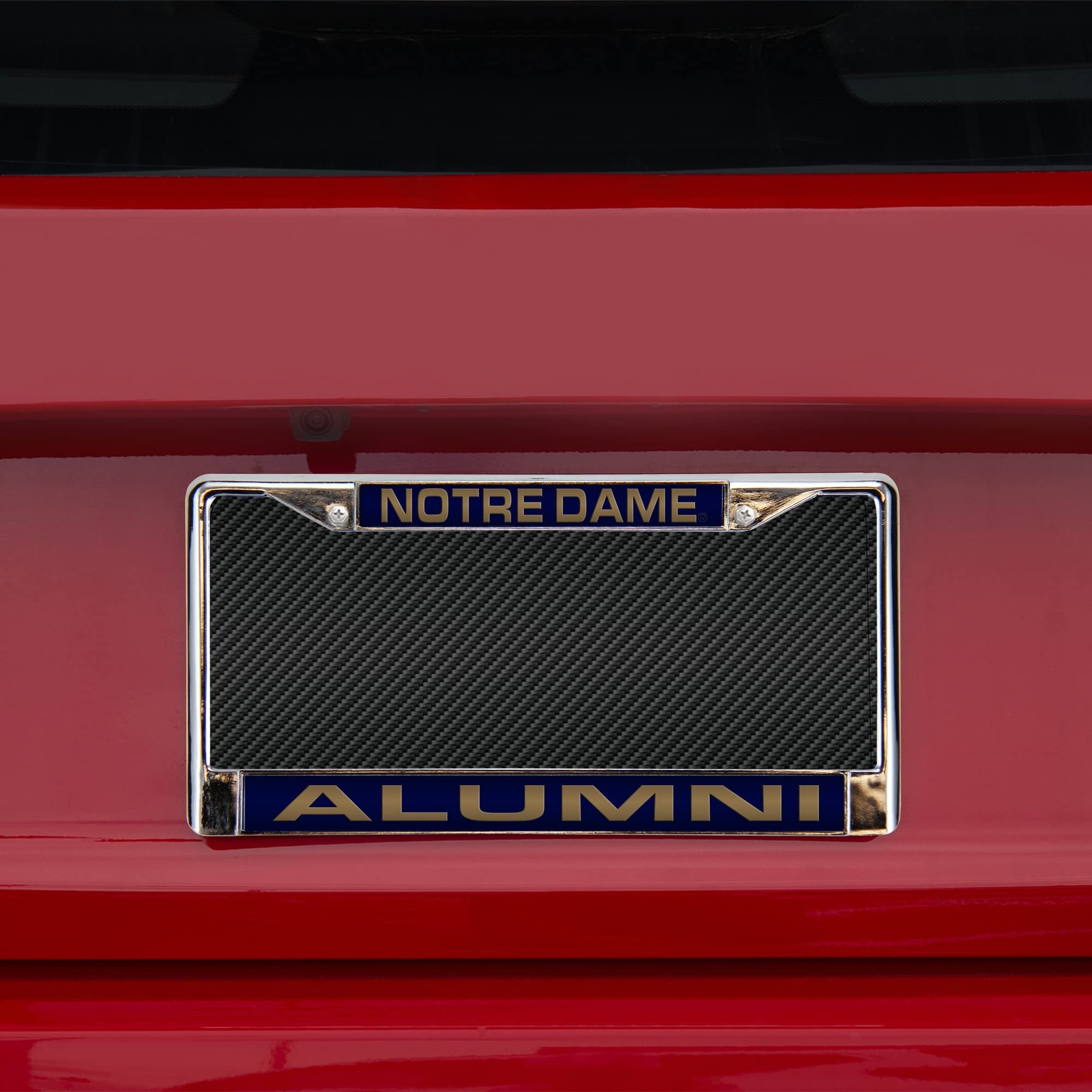 University of Notre Dame Fighting Irish Alumni Metal License Plate Frame Chrome Tag Cover, Laser Cut Mirrored Acrylic Inserts, 12x6 Inch, Pre-Drilled Holes, Officially Licensed
