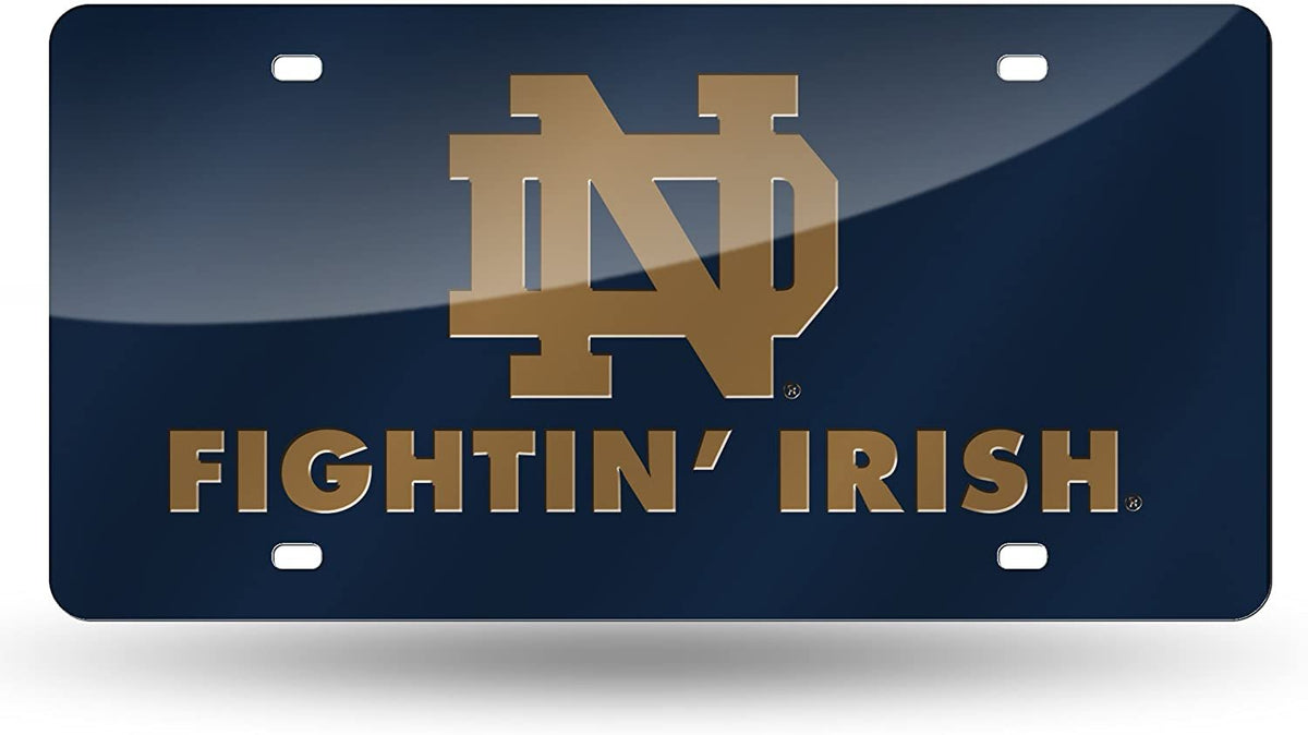 University of Notre Dame Fighting Irish Premium Laser Cut Tag License Plate, Mirrored Acrylic Inlaid, 6x12 Inch