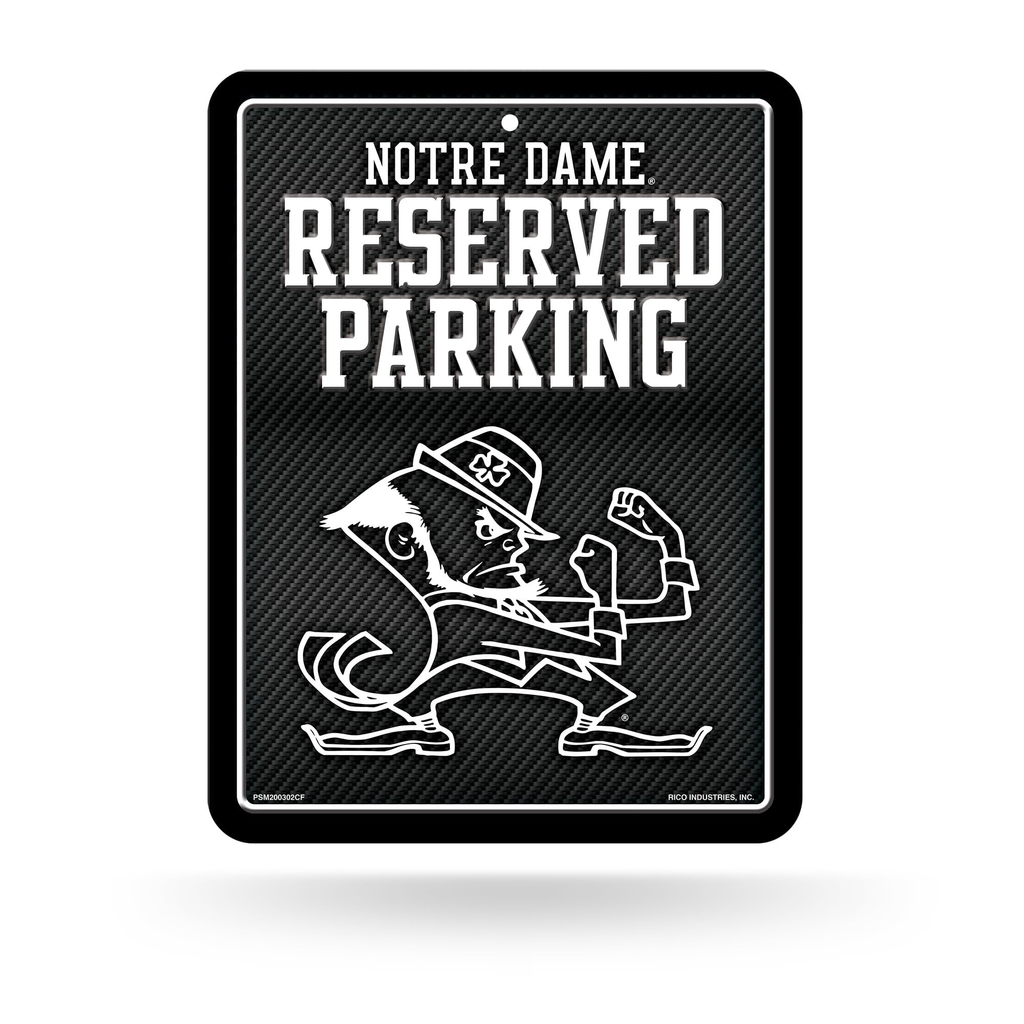 Rico Industries NCAA Notre Dame Fighting Irish Metal Parking Sign 8.5" x 11" Carbon Fiber Metal Parking Sign - Great for Man Cave, Bed Room, Office, Home Décor
