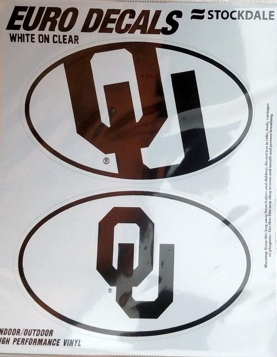 University of Oklahoma Sooners 2-Piece Euro Decal Sticker Set, White and Clear Color, 4x2.5 Inch Each