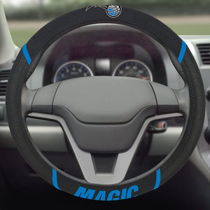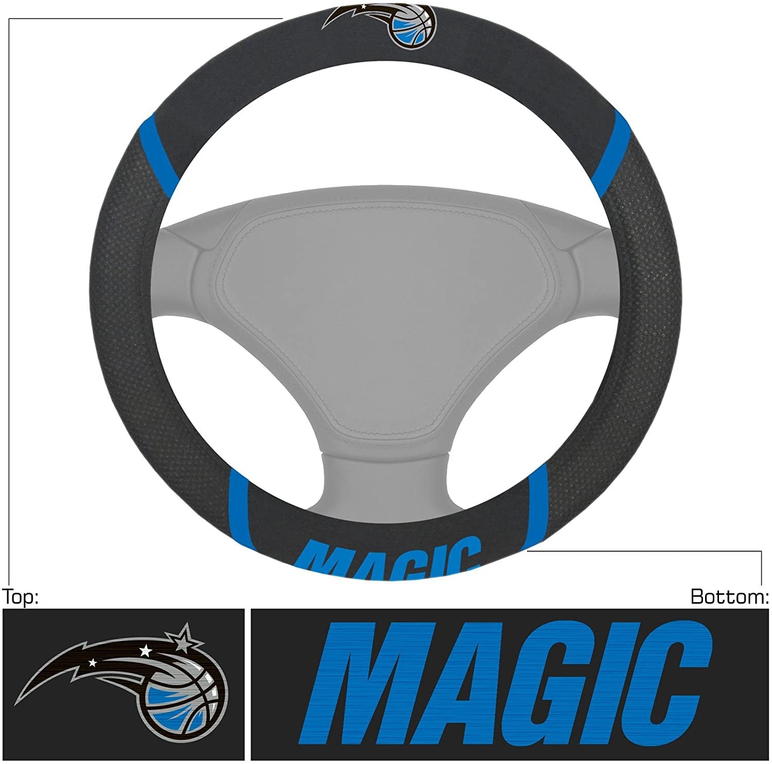 FANMATS NBA Orlando Magic Steering Wheel Cover features your favorite team and dresses up your vehicle interior. Crafted with a combination of faux suede and mesh fabric, embroidered with your team logo and team name. Keeps your steering wheel cool in the summer and warm in the winter. Approximately 15 inches in diameter, the steering wheel cover fits most vehicles. Customize your ride and announce your team spirit with pride.