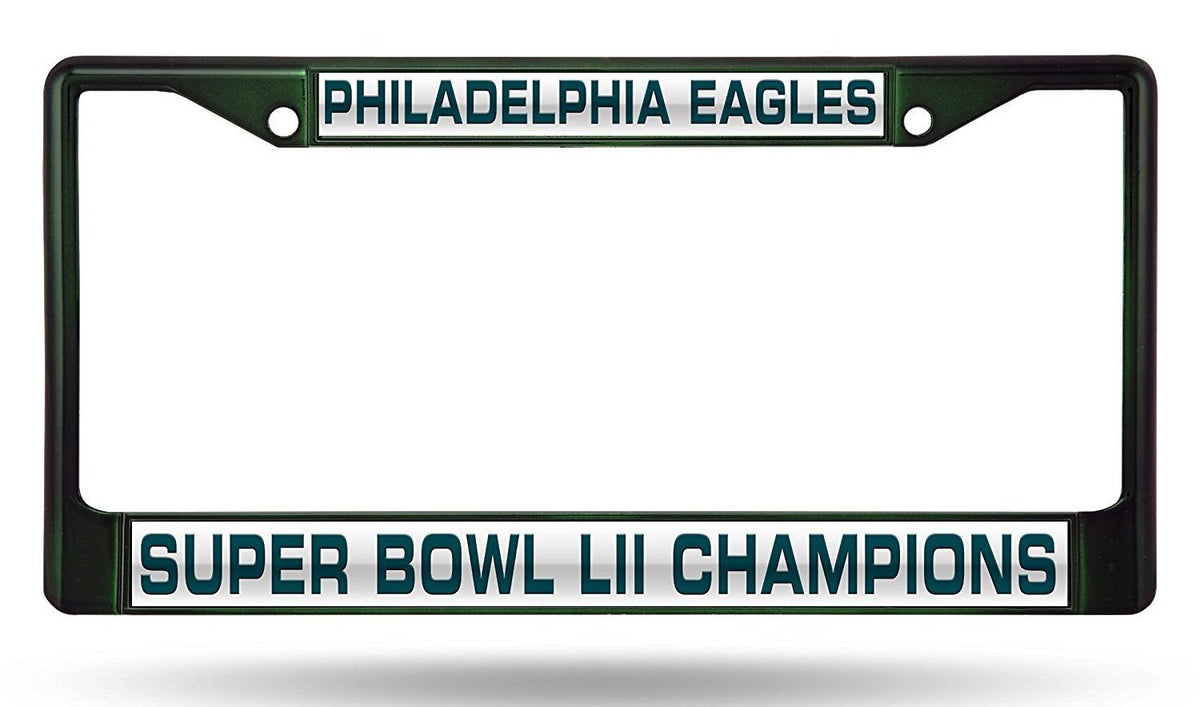 Philadelphia Eagles 2018 Champions Metal License Plate Frame Chrome Tag Cover, Super Bowl LII, Laser Cut Acrylic Inserts, 12x6 Inch, Pre-Drilled Holes, Officially Licensed