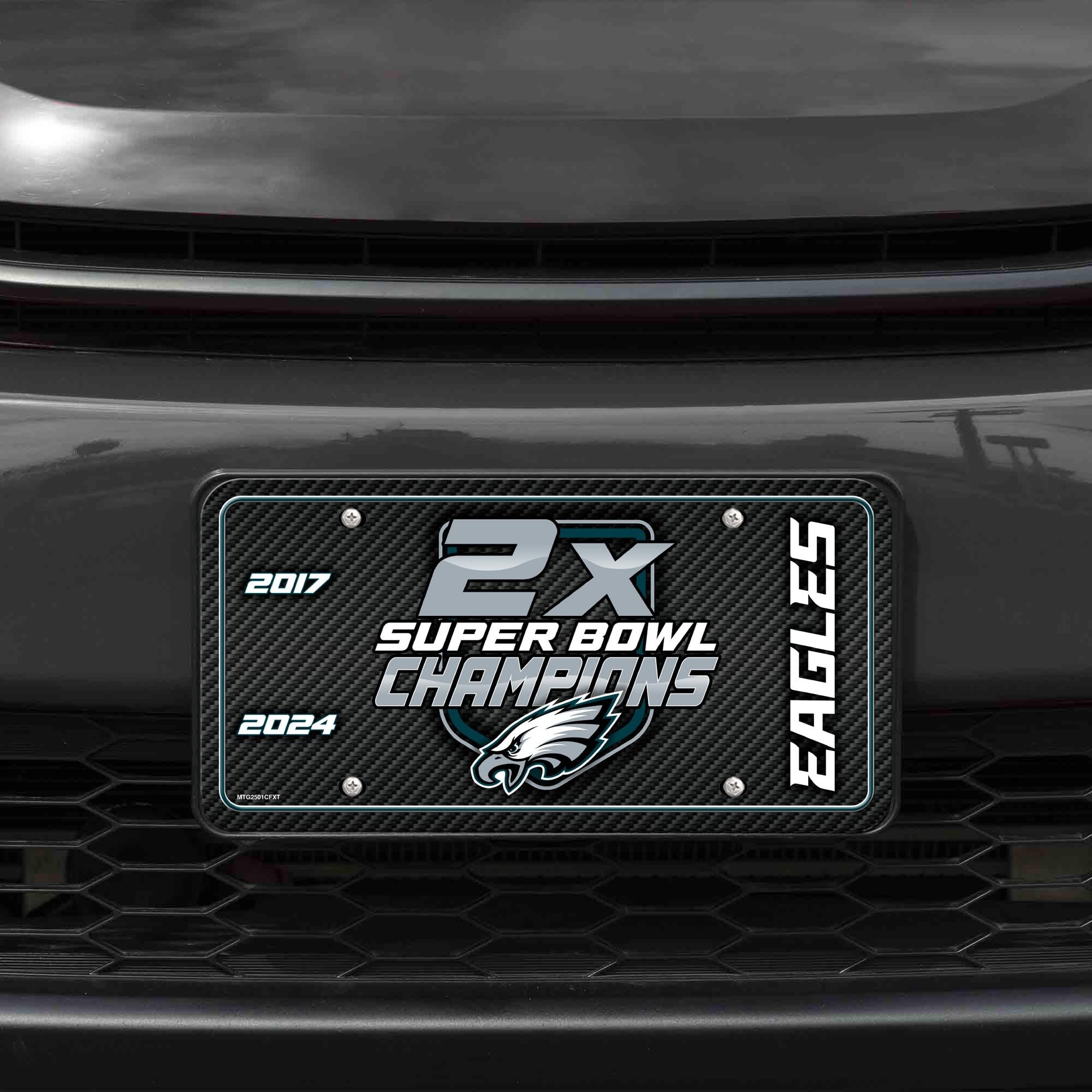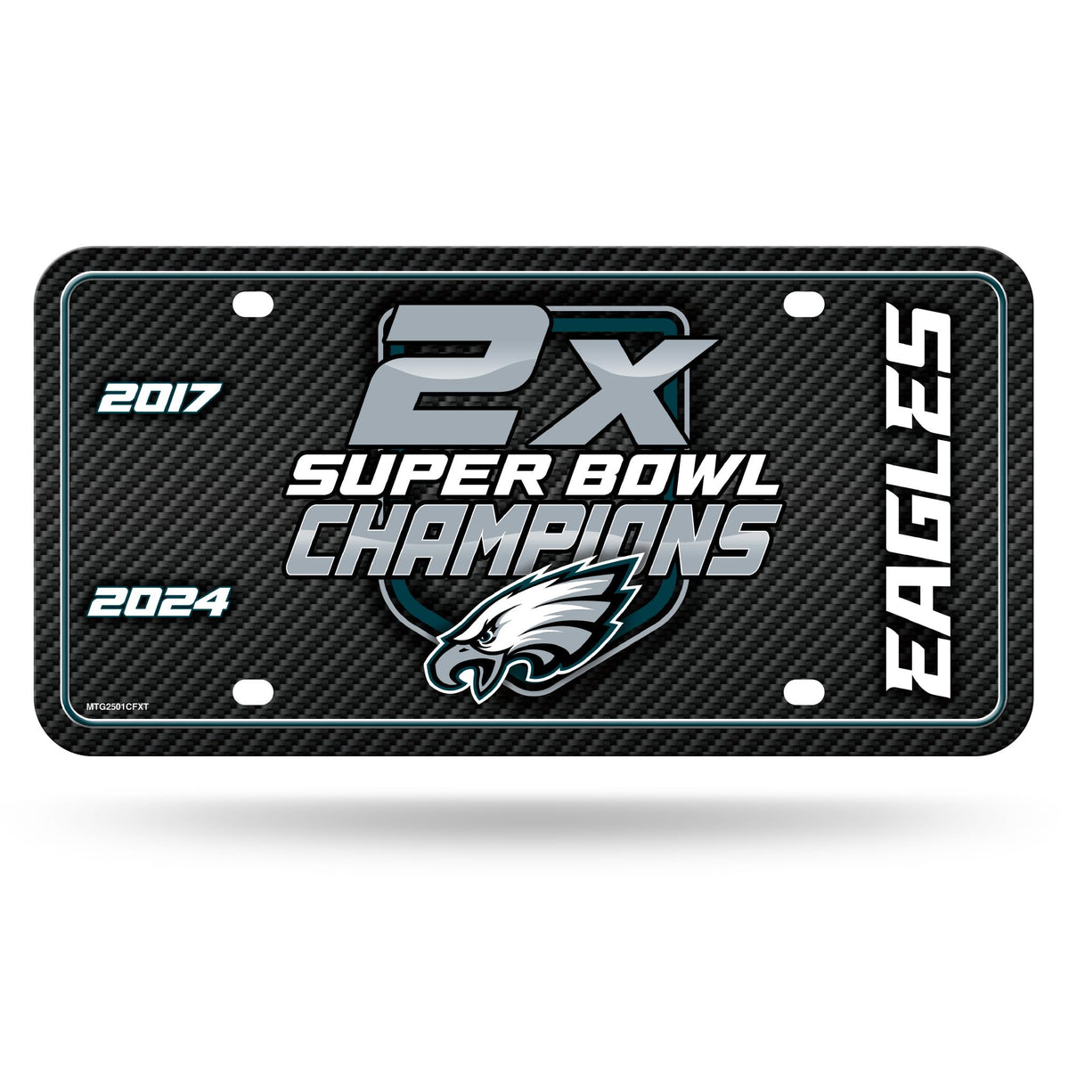 Philadelphia Eagles 2-Time Champions Premium Metal Tag License Plate, Carbon Fiber Design, 12x6 inch, Pre-Drilled Holes, Officially Licensed