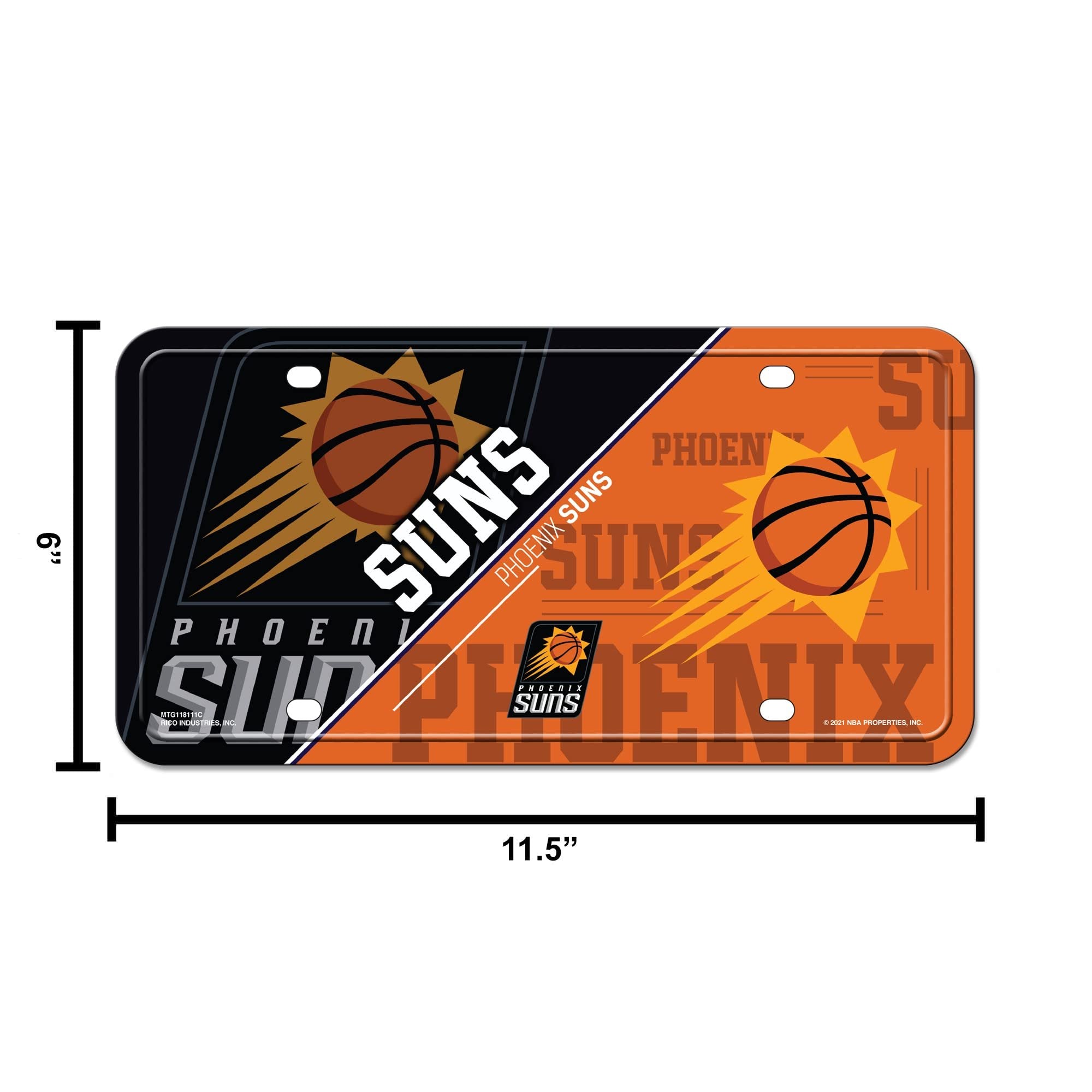 Rico Industries NBA Basketball Phoenix Suns Split Metal Auto Tag 8.5" x 11" - Great for Truck/Car/SUV