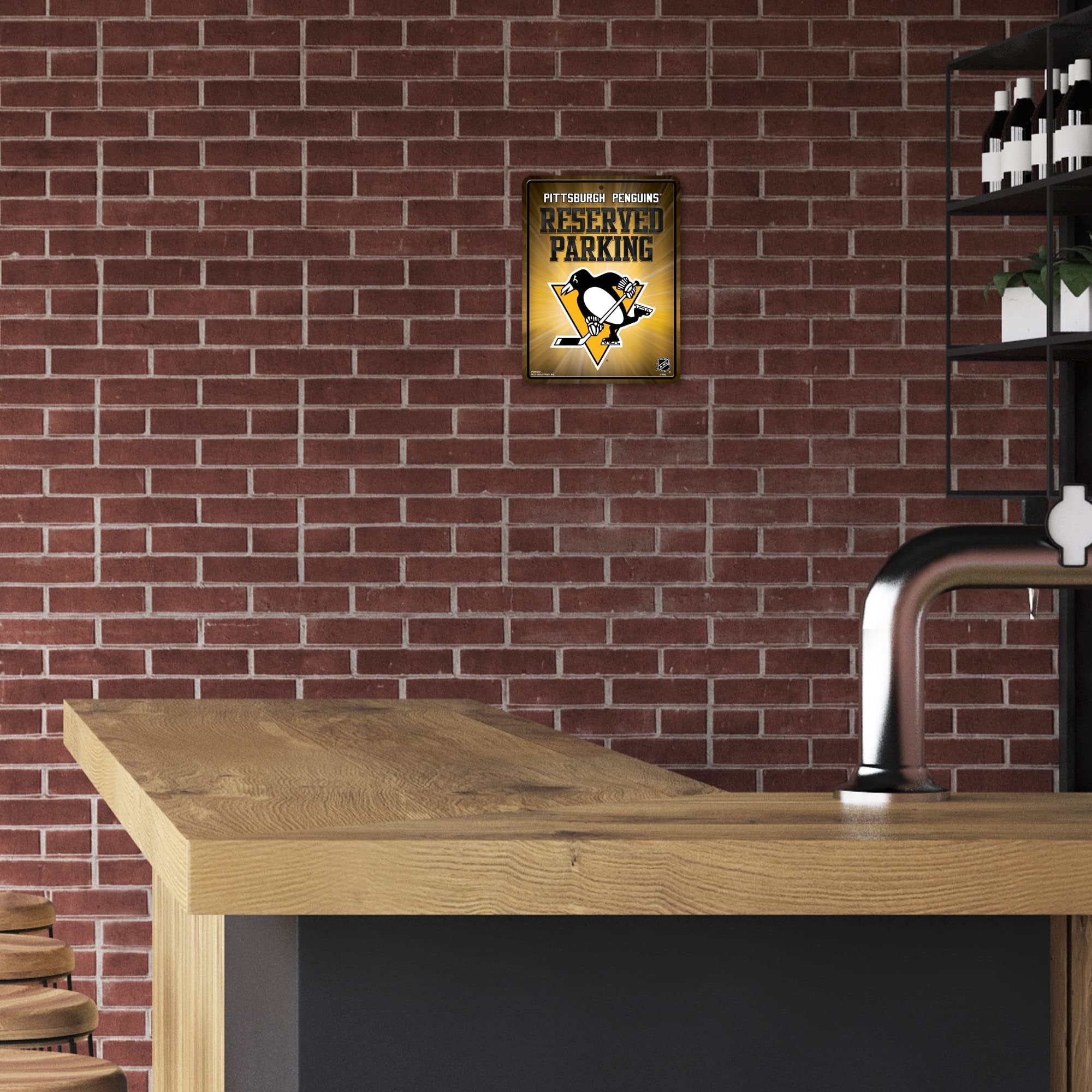 Pittsburgh Penguins Metal Wall Parking Sign, 8.5x11 Inch, Primary Design, Great for Man Cave, Bed Room, Office, Home Decor