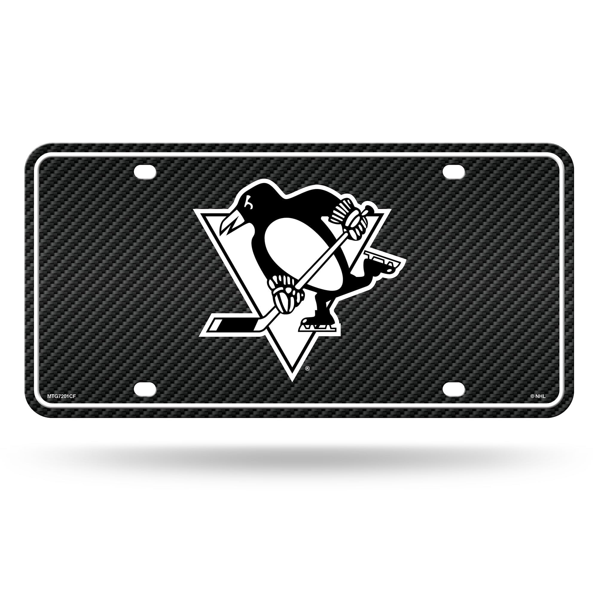 Pittsburgh Penguins Premium Metal Tag License Plate, Carbon Fiber Design, 12x6 Inch, Pre-Drilled Holes, Officially Licensed