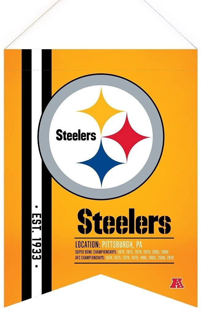 Rico Industries SSF2301: Steelers Soft Felt Hanging Scroll Flag (18" X 24")FeltOfficially Licensed Product18 x 24 inches with dowel hidden along the top and attached cord to hang on wallScroll Flag is printed in team colors with team logo, location, year established and Conference ChampionshipsNice item for any fanProudly hang indoors in your home, office, man cave or basement