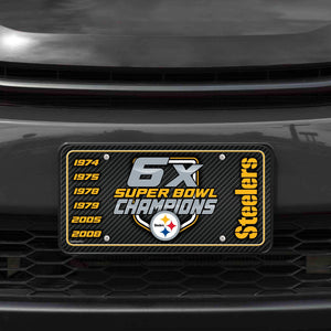Pittsburgh Steelers 6-Time Champions Premium Metal Tag License Plate, Carbon Fiber Design, 12x6 inch, Pre-Drilled Holes, Officially Licensed