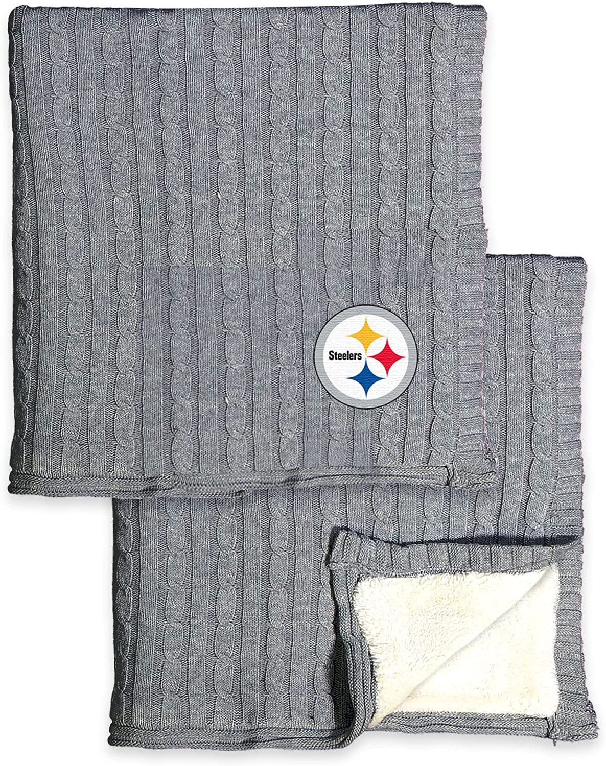 Pittsburgh Steelers Cable Sweater Knit Sherpa Throw Blanket 50x60 Inch Adult