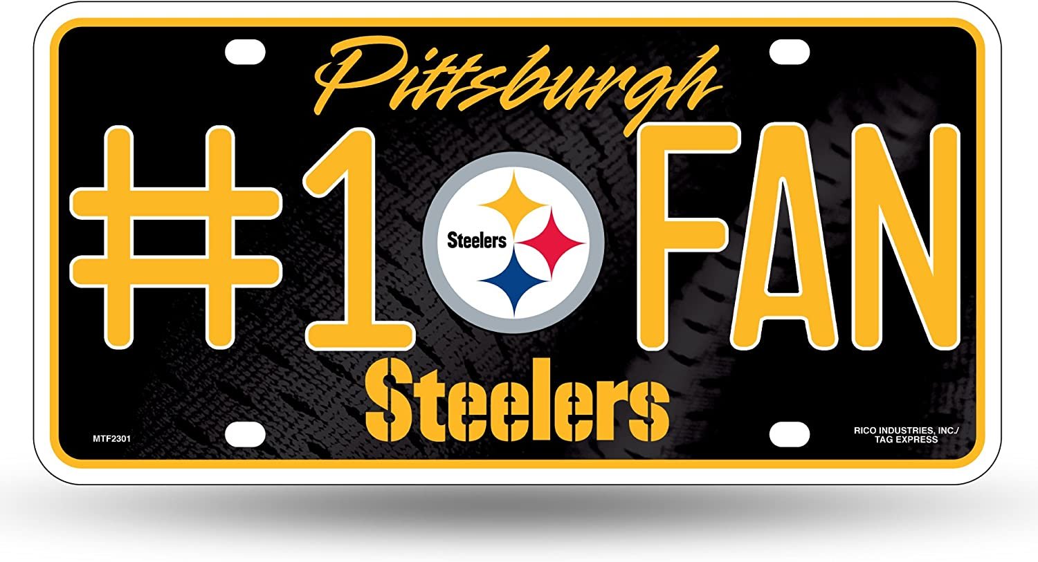 Pittsburgh Steelers Metal Auto Tag License Plate, #1 Fan Design, 12x6 Inch