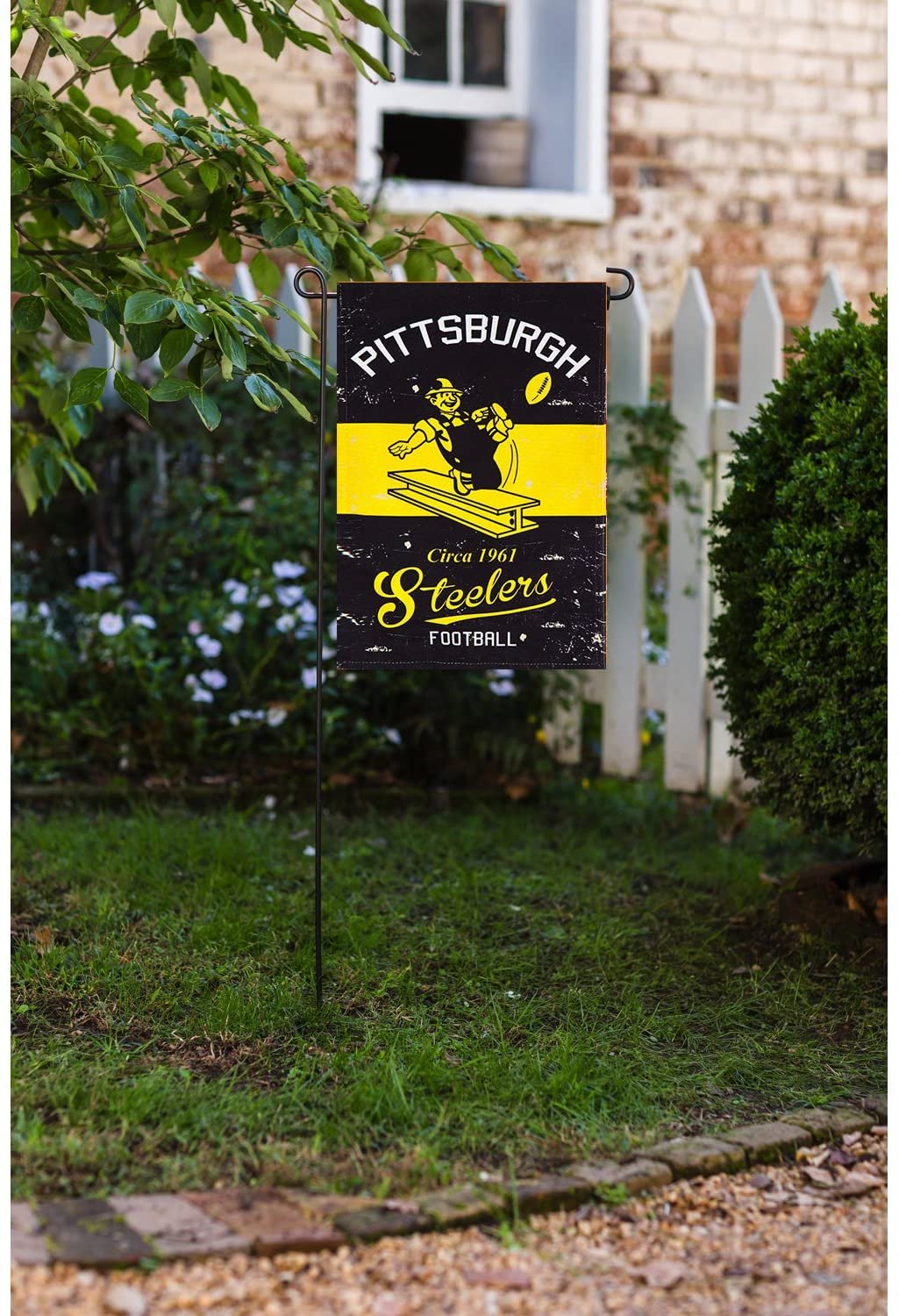 Pittsburgh Steelers Premium Garden Flag Banner, Double Sided, Retro Vintage Style, Linen, 13x18 Inch