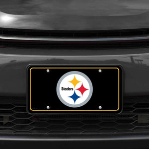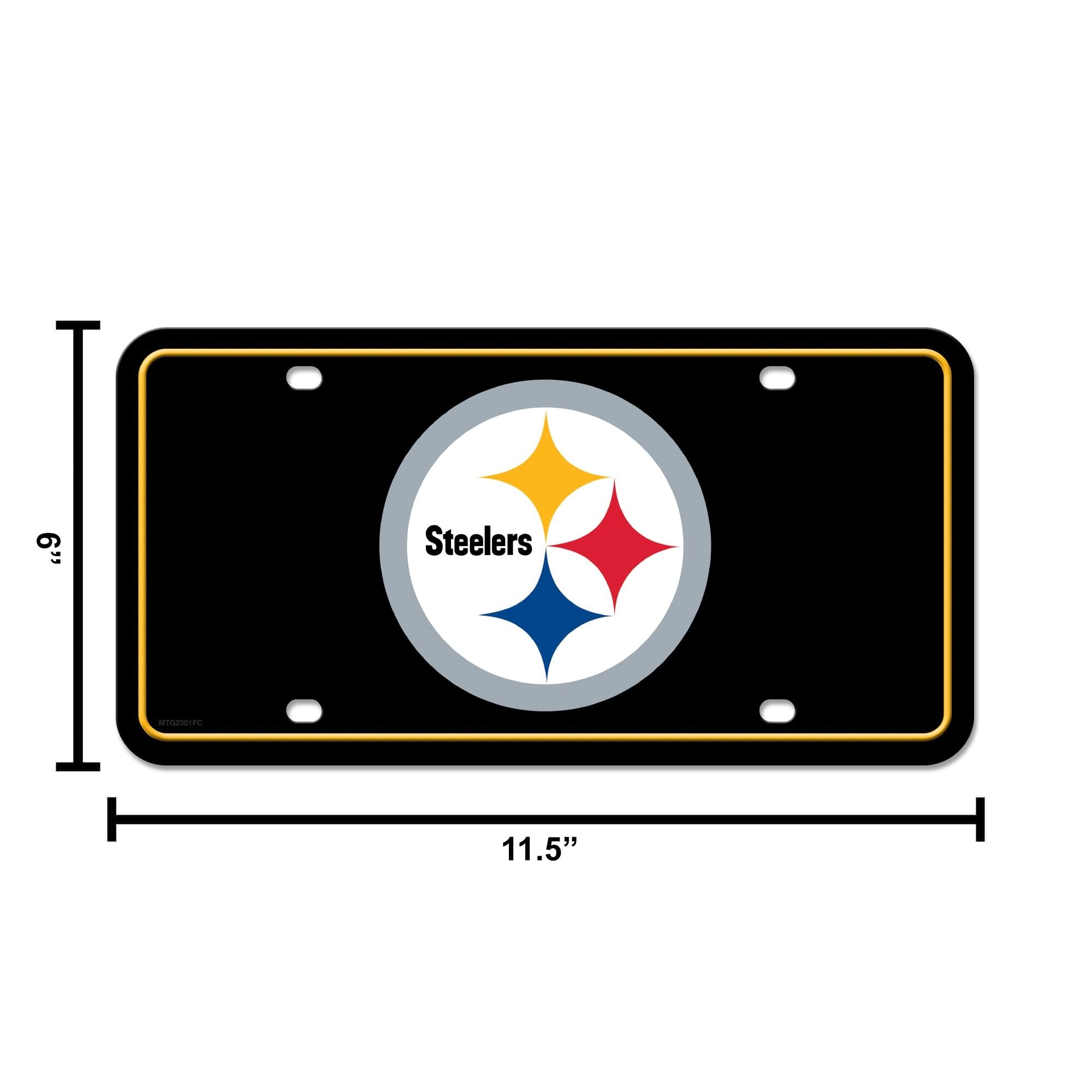 Pittsburgh Steelers Team Logo Metal Auto Tag 6" x 12" A great gift idea for Steelers football fans that is guaranteed to be a beloved possession with eye catching graphics. Durable and fade resistant, the 12" x 6" automobile tag is expertly made, using quality aluminum which ensures it can survive the different season and extreme weather. This auto accessory is perfect for the casual and everyday fan. Whether it is game day at the stadium or a home game with friends this auto tag will be the highlight of the drive. This tag can be used on the front or back or your car, truck, or RV. It can also be used on your trailer. Has predrilled screw holes to easily attach onto your automobile. Hassle free!Great Gift Item for NFL Football Fans: Guaranteed to be your most beloved possession as it boasts eye catching graphics and is inscribed with your favorite squad’s name and colors. Proudly display your favorite teams name and colorA One-Of-A-Kind Tag – Be the first to own an exceptionally durable, fade resistant 12" x 6" automobile tag. Expertly made, using quality aluminum which ensures your tag can survive the different season and extreme weather.A Fan Favorite 12" x 6" Car/Truck Tag - This auto accessory is perfect for the casual and everyday fan. Whether it is game day at the stadium or a home game with friends this auto tag will be the highlight of the drive.High Performance & Versatile: This brand-new accessory tag can be used on the front or back or your car, truck, or RV. It can also be used on your trailer. Has predrilled screw holes to easily attach onto your automobile. Hassle free!Bring Your Room Car To Life With This Officially Licensed Car/Truck Tag - A limited edition collectible that will be talked about forever whether you are a casual, social, or super fanatic fan. All your friends will be asking you where you got your auto Tag!