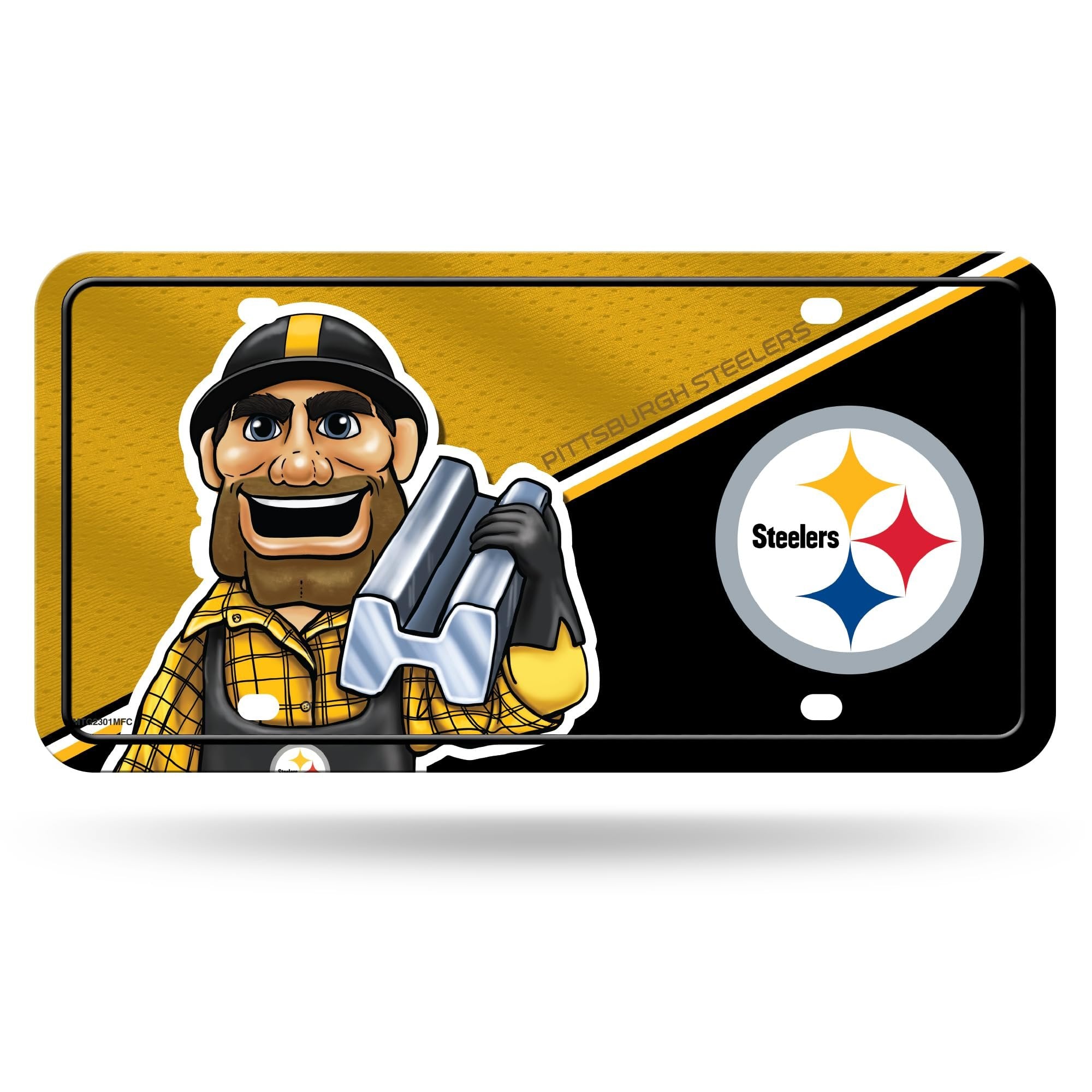 Pittsburgh Steelers Mascot Design Metal License Plate 6" x 12" A great gift idea for Pittsburgh Steelers football fans that is guaranteed to be a beloved possession with eye catching graphics. Durable and fade resistant, the 12" x 6" novelty automobile license plate is expertly made, using quality aluminum which ensures it can survive the different season and extreme weather. This auto accessory is perfect for the casual and everyday fan. Whether it is game day at the stadium or a home game with friends this sports logo license plate will be the highlight of the drive. It can be used on the front or back or your car, truck, or RV. Has predrilled screw holes to easily attach onto your automobile. Hassle free!Great Gift Item for Football Fans: Guaranteed to be your most beloved possession as it boasts eye catching graphics and is inscribed with your favorite squad’s name and colors. Proudly display your favorite teams name and colorA One-Of-A-Kind Sports Fan Novelty License Plate – Be the first to own an exceptionally durable, fade resistant 12" x 6" automobile tag. Expertly made, using quality aluminum which ensures your tag can survive the different season and extreme weather.A Fan Favorite Auto Accessory - This sports logo license plate is perfect for the casual and everyday fan. Whether it is game day at the stadium or a home game with friends this auto tag will be the highlight of the drive.High Performance & Versatile: This brand-new novelty license plate can be used on the front or back or your car, truck, or RV. It can also be used on your trailer. Has predrilled screw holes to easily attach onto your automobile. Hassle free!Bring Your Room Car To Life With This Officially Licensed Car/Truck Tag - A limited edition collectible that will be talked about forever whether you are a casual, social, or super fanatic fan. All your friends will be asking you where you got your auto Tag!