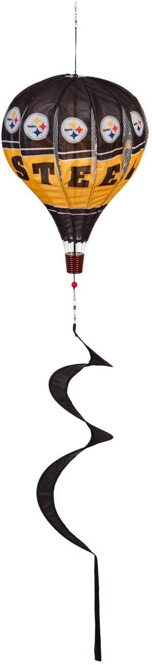 - SUPPORT YOUR TEAM IN STYLE: Show your pride loud and proud with this gorgeous balloon spinner. Pittsburgh Steelers fans will enjoy a black and yellow spinner with the team logo embossed in the center. The heat transferred artwork and spiraling ribbons accent the balloon and display your team spirit for everyone to see.