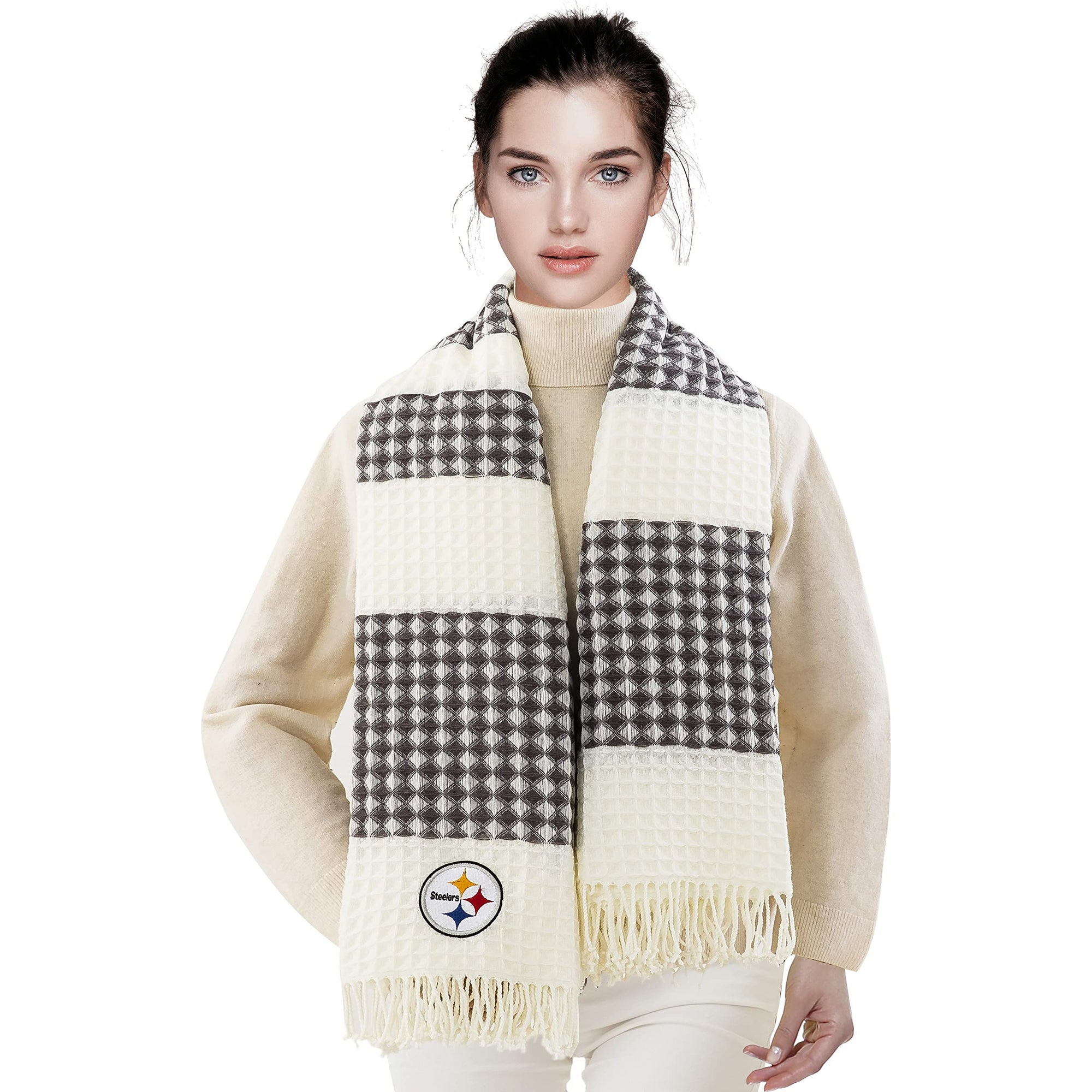 Northwest The Company NFL Pittsburgh Steelers Waffle Weave Jacquard Throw Blanket, 50" x 60", White/Grey