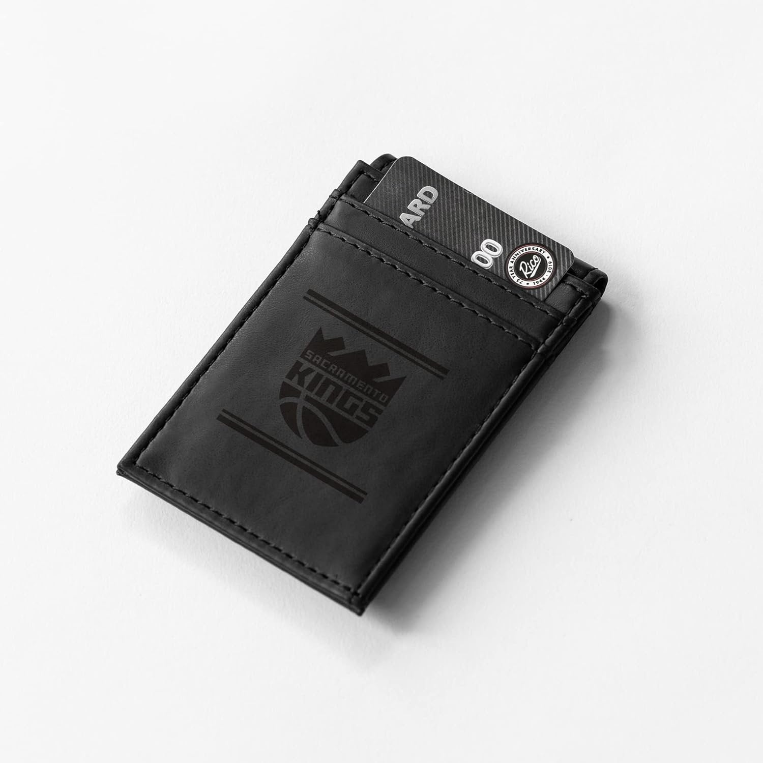 Sacramento Kings Premium Black Leather Wallet, Front Pocket Magnetic Money Clip, Laser Engraved, Vegan