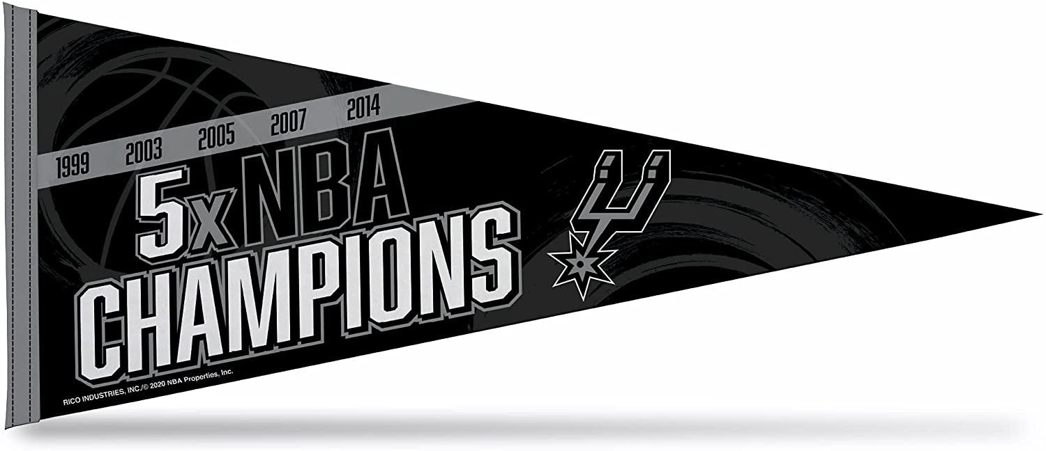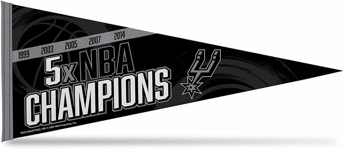 San Antonio Spurs 5-Time NBA Champions Soft Felt Pennant, 12x30 Inch, Easy To Hang