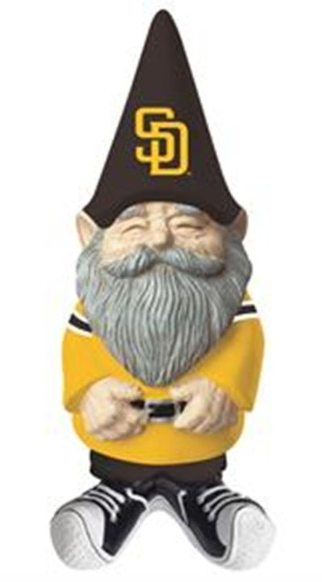 OFFICIALLY LICENSED: Authentic San Diego Padres merchandise featuring team colors and logo on the gnome's black pointed hatVERSATILE DISPLAY: 11-inch decorative gnome statue perfect for indoor or outdoor spaces including gardens, patios, offices, and fan cavesDURABLE CONSTRUCTION: Hand-painted resin construction ensures weather resistance and long-lasting team spirit displayDESIGN DETAILS: Features classic gnome styling with a yellow uniform, gray beard, and decorative base with wheelsPERFECT GIFT: Ideal collectible figurine for Padres fans, sports enthusiasts, and garden decor collectorsPlease select all options.