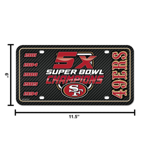 San Francisco 49ers 5-Time Champions Premium Metal Tag License Plate, Carbon Fiber Design, 12x6 inch, Pre-Drilled Holes, Officially Licensed
