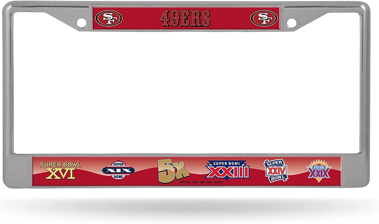 San Francisco 49ers 5X Champions Premium Metal License Plate Frame Chrome Tag Cover, 12x6 Inch