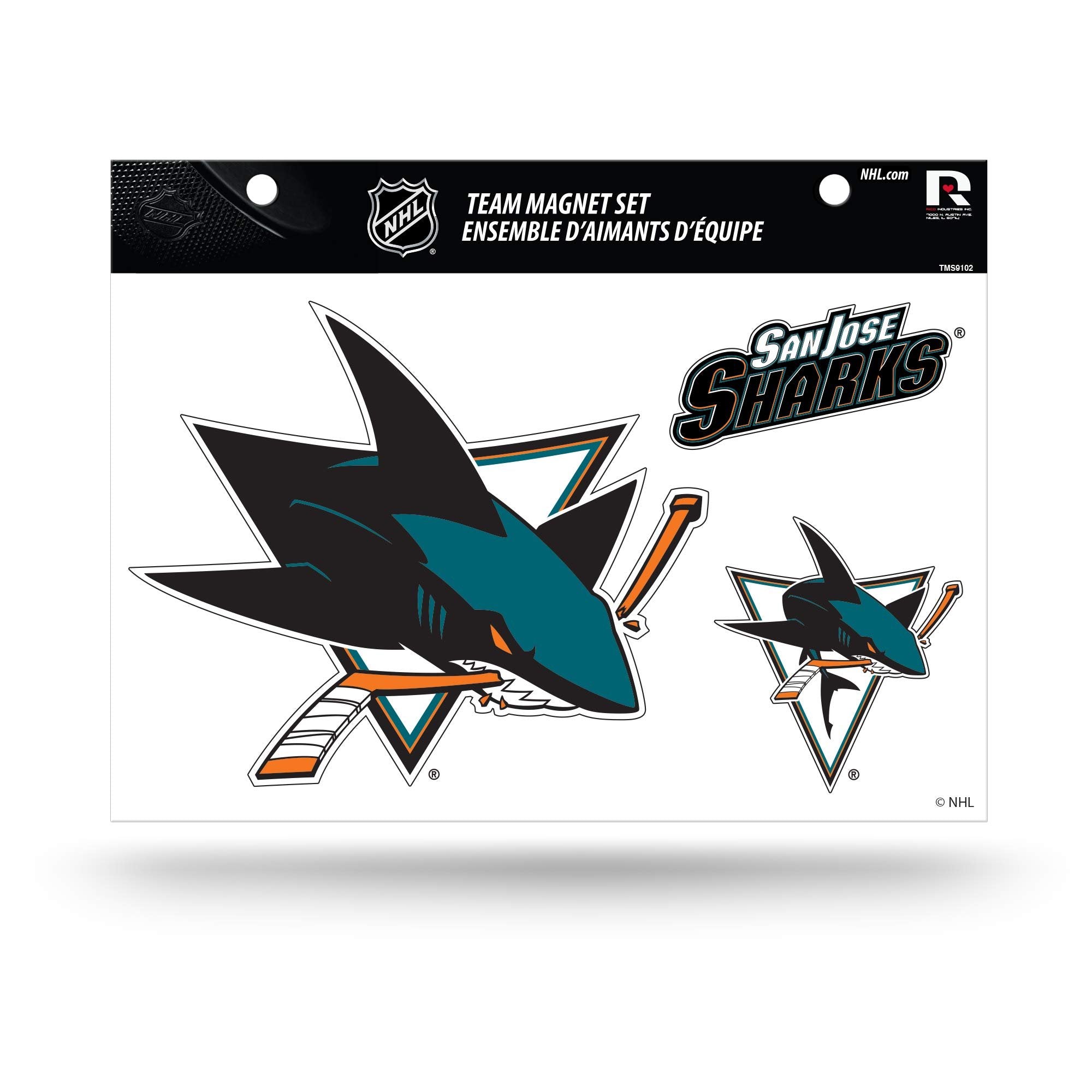 NHL San Jose Sharks Die Cut Team Magnet Set SheetSet Includes 3 Die-Cut Magnets, Sheet measures 8.5 x 11-inchesDecorated with bold team graphics, Great way to showcase your team allegianceFeatures team logo shapes with team wordmarkMade from magnetic material that can be used on most metal surfacesOfficially Licensed; Made in the USAOfficially Licensed; Made in the USAWhat can be better than displaying your team pride with a well designed and high quality magnet? Displaying your team pride with THREE well designed and high quality team magnets by Rico Industries! The magnetic material used is perfect for molding to car shapes, while maintaining their bright, colorful colors. After all, you can't show everyone where your loyalty lies if your magnet doesn't hold up in rain or shine.