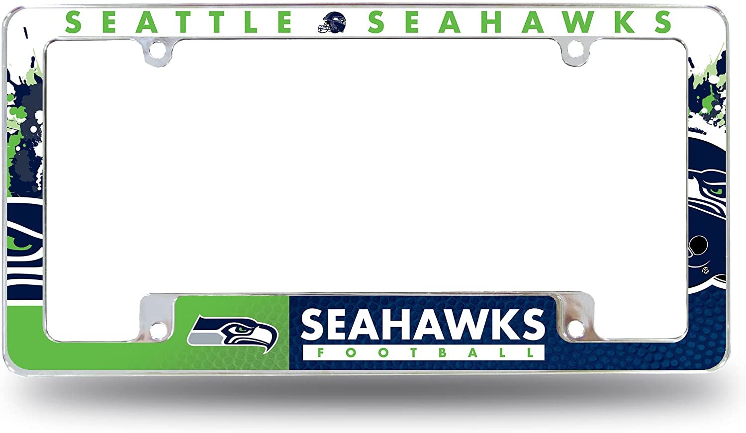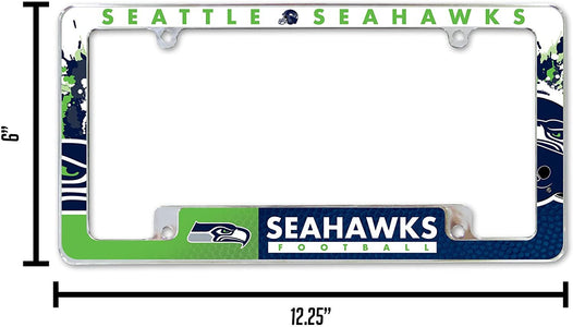Seattle Seahawks Metal License Plate Frame Chrome Tag Cover All Over Design 12x6 Inch