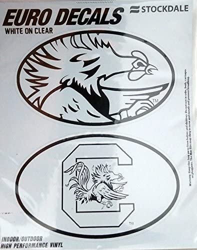 University of South Carolina Gamecocks 2-Piece White and Clear Euro Decal Sticker Set, 4x2.5 Inch Each