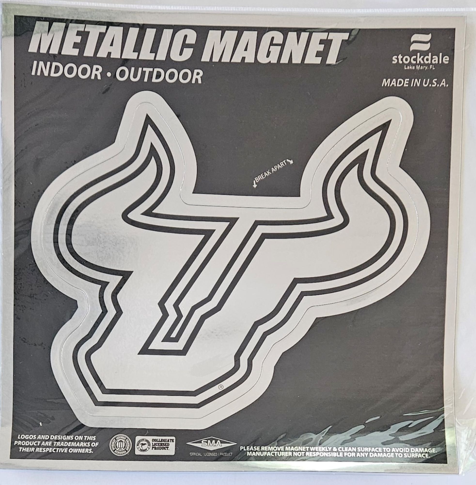 University of South Florida Bulls USF 12 Inch Magnet, Chrome Metallic Shimmer Design, Vinyl Die Cut, Auto Home, Heavy Duty, Officially Licensed