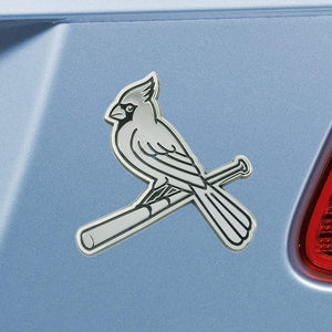 FANMATS 27049 St. Louis Cardinals 3D Chrome Metal Auto Emblem - Bird on Bat and Wordmark Primary LogoMade of heavy duty chrome and feature a molded 3D team logoEmblems resist the elements and look great for yearsEasy to install, just peel and stick, it’s a breezeCan be removed if wanted, and it will not damage your vehicleAttaches without use of tools for an easy on and offFit type: Universal Fit