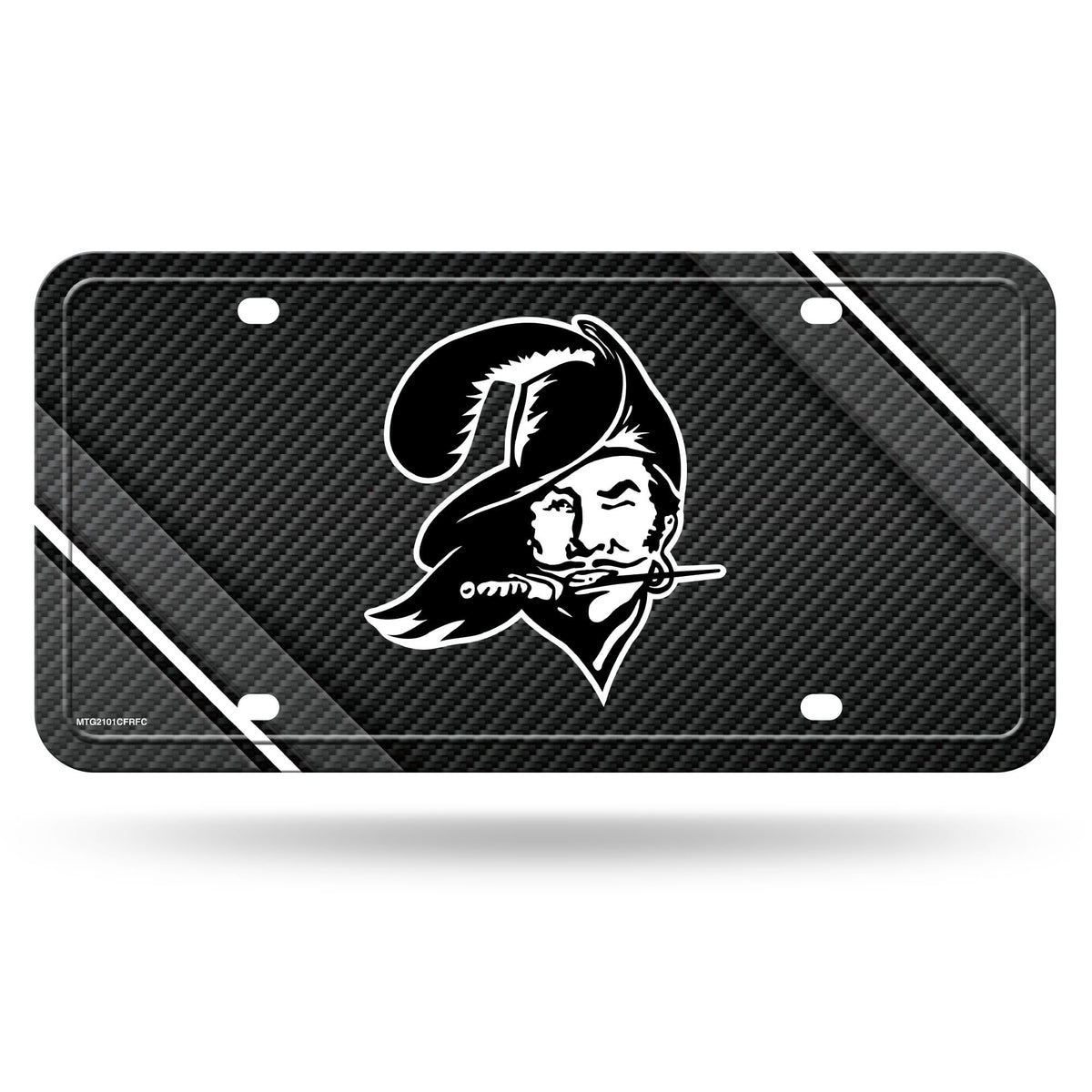 Tampa Bay Buccaneers Premium Metal Auto Tag License Plate, Retro Logo, Carbon Fiber Design Background, 6x12 Inch, Pre-Drilled Holes, Officially Licensed