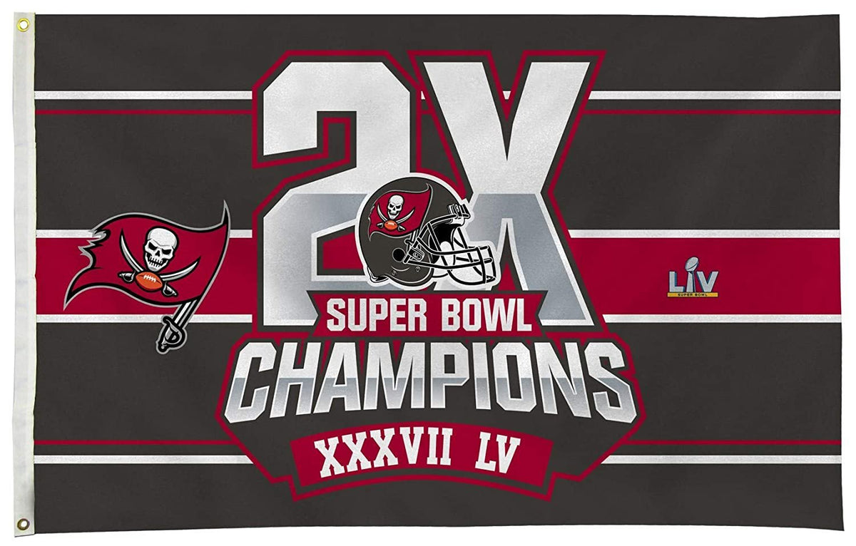 Tampa Bay Buccaneers 2-Time Champions Premium 3x5 Feet Flag Banner, Logo Design, Metal Grommets, Outdoor Use, Single Sided
