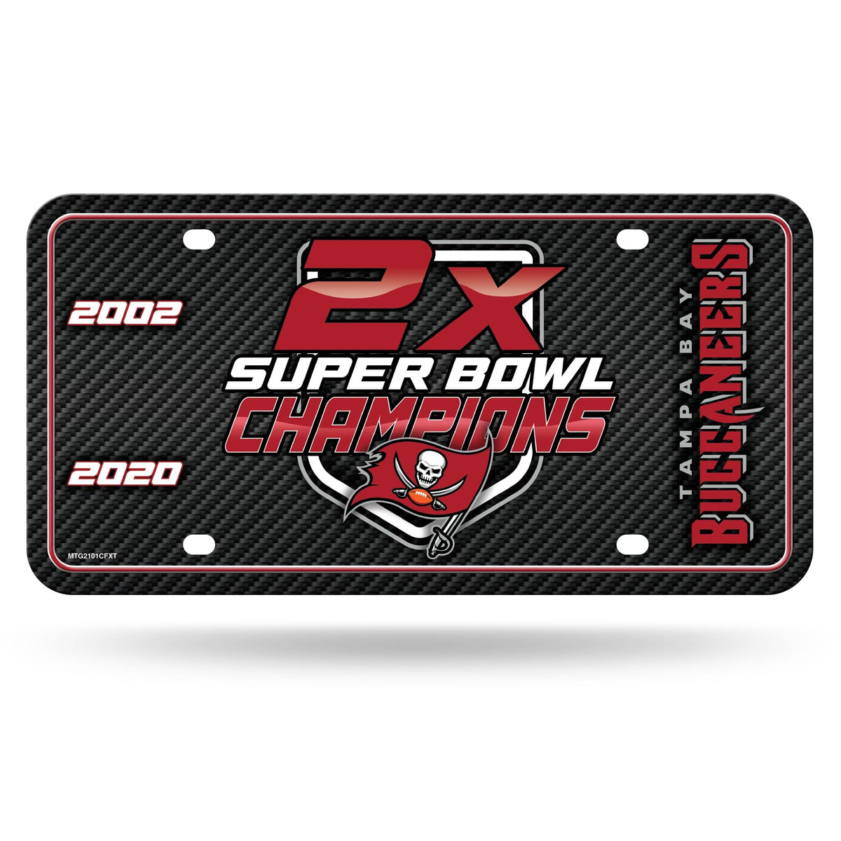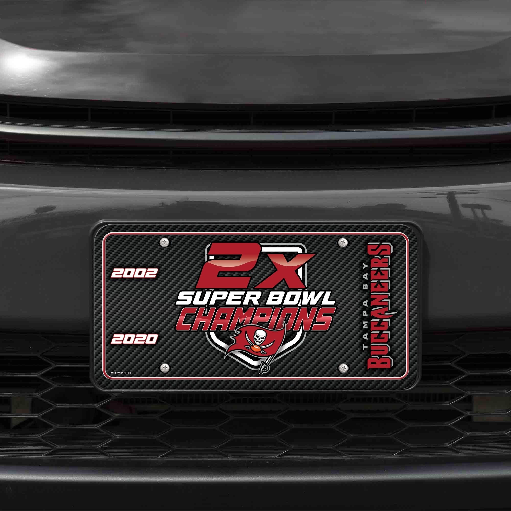 Tampa Bay Buccaneers 2-Time Champions Premium Metal Tag License Plate, Carbon Fiber Design, 12x6 inch, Pre-Drilled Holes, Officially Licensed