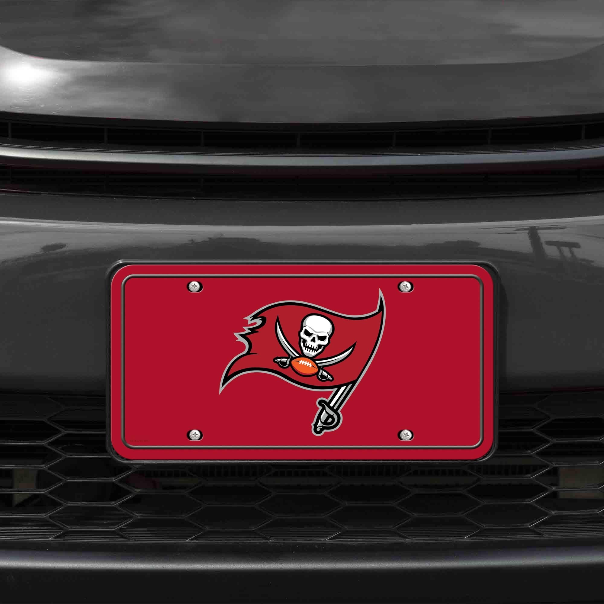 Tampa Bay Buccaneers Premium Laser Cut Tag License Plate, Pewter Mirrored Acrylic Inlaid, 12x6 Inch
