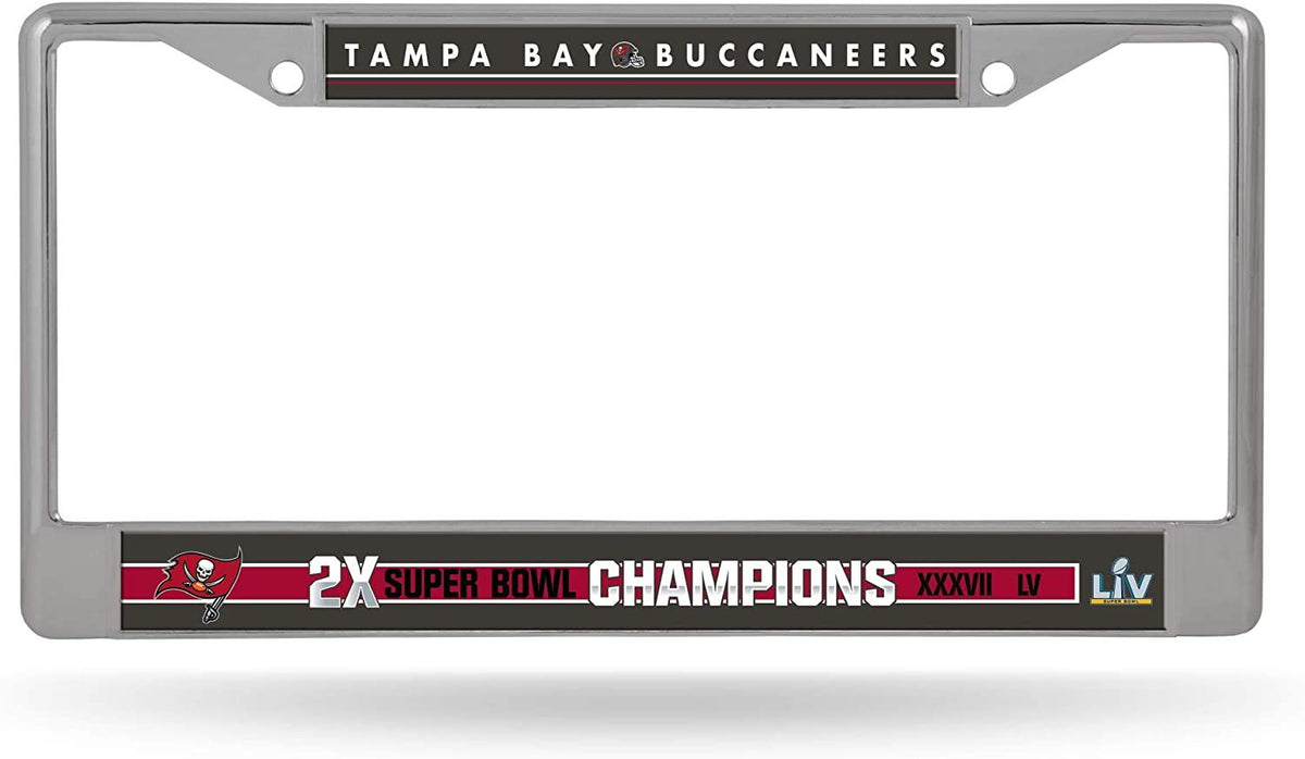 Tampa Bay Buccaneers 2 Time Super Bowl Champions Metal License Plate Frame Tag Cover, 6x12 Inch, Colored Chrome