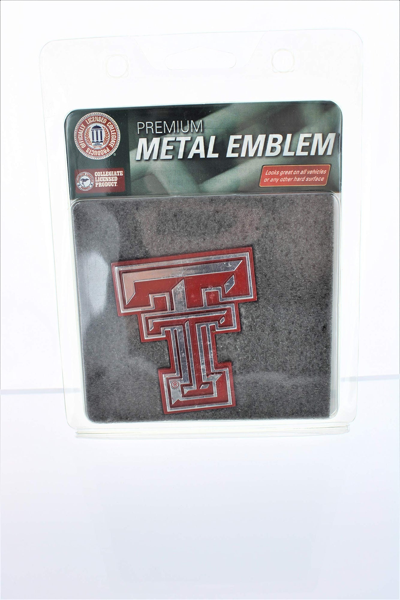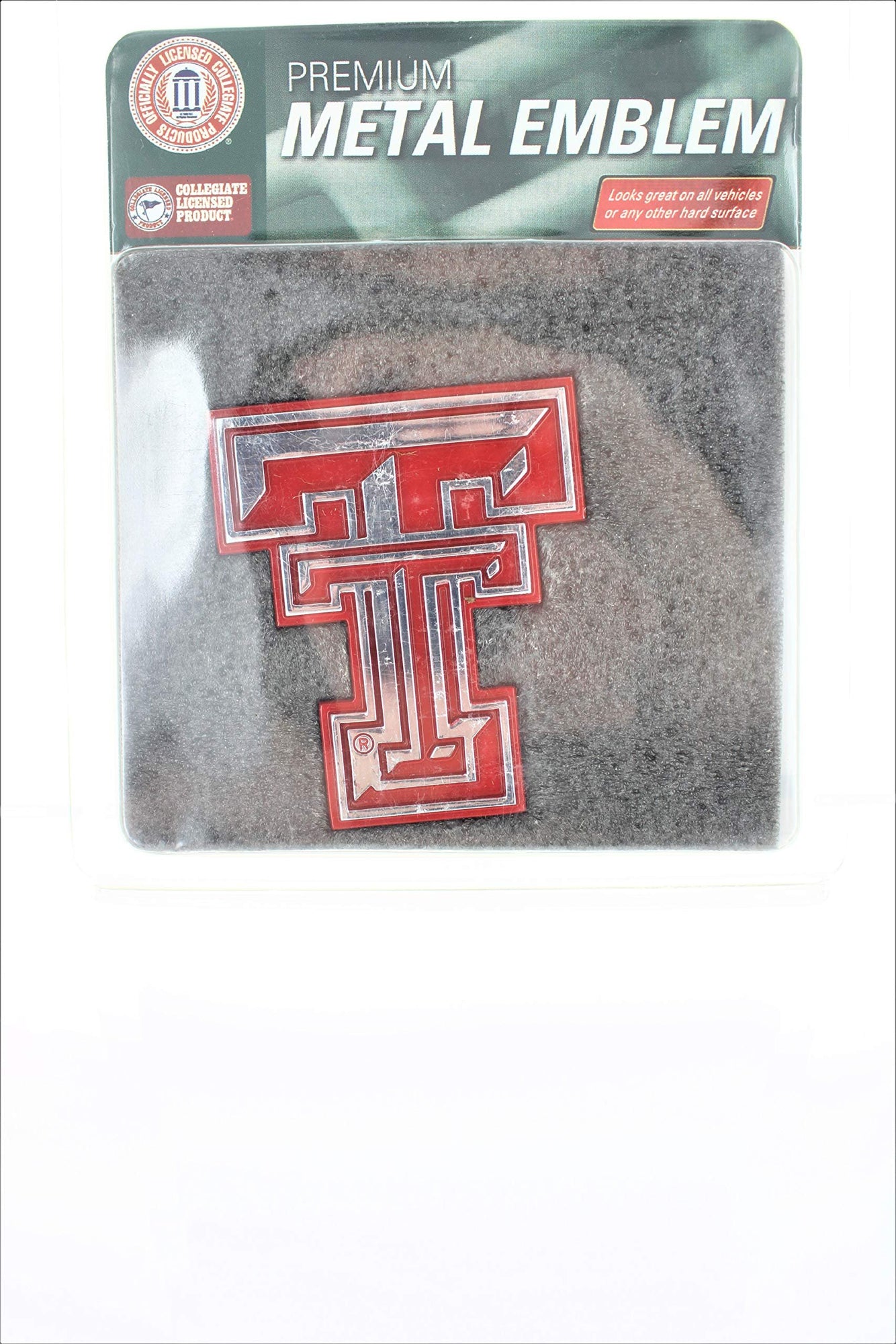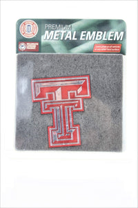 Texas Tech University Red Raiders Ultra Premium Solid Metal Auto Emblem, Raised Die Cut, Red Accent, Adhesive Backing, Officially Licensed