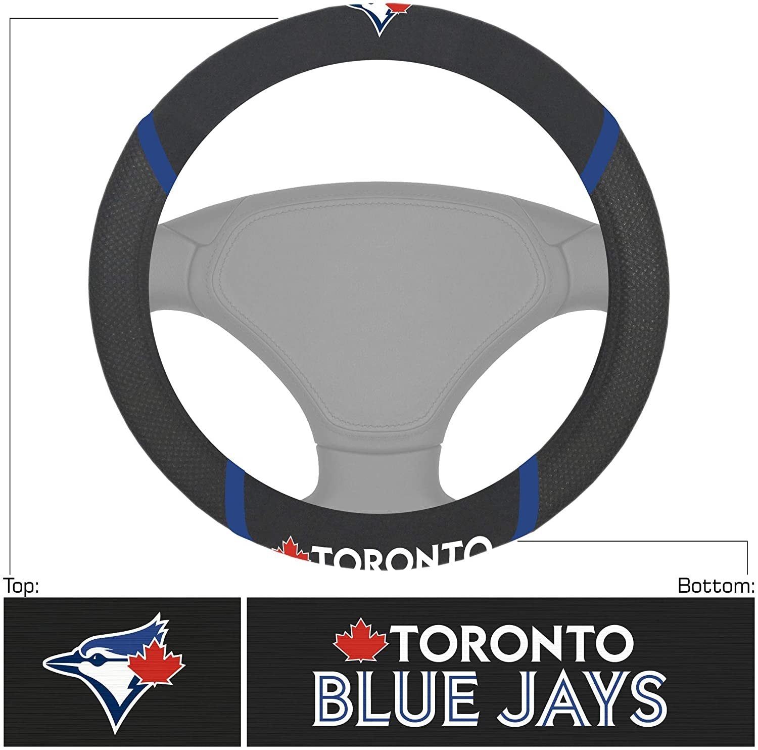 Toronto Blue Jays Steering Wheel Cover Premium Embroidered Black 15 Inch