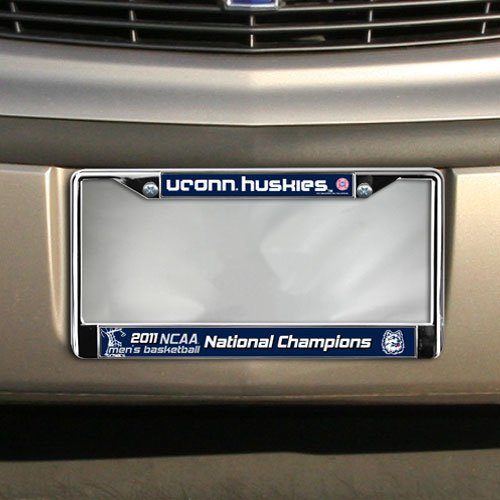 University of Connecticut Huskies UCONN, 2011 Champions Premium Metal License Plate Frame Chrome Tag Cover, 12x6 Inch