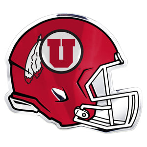 University of Utah Utes Embossed Color Auto Emblem, Raised Aluminum Metal, Helmet Design, Full Adhesive Backing, Officially Licensed