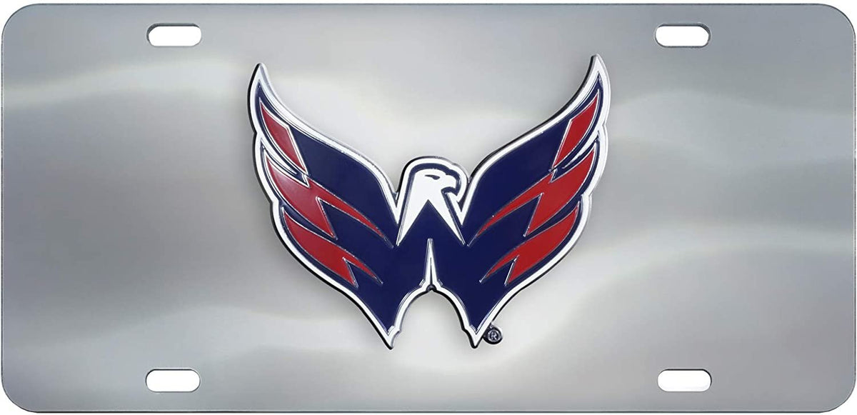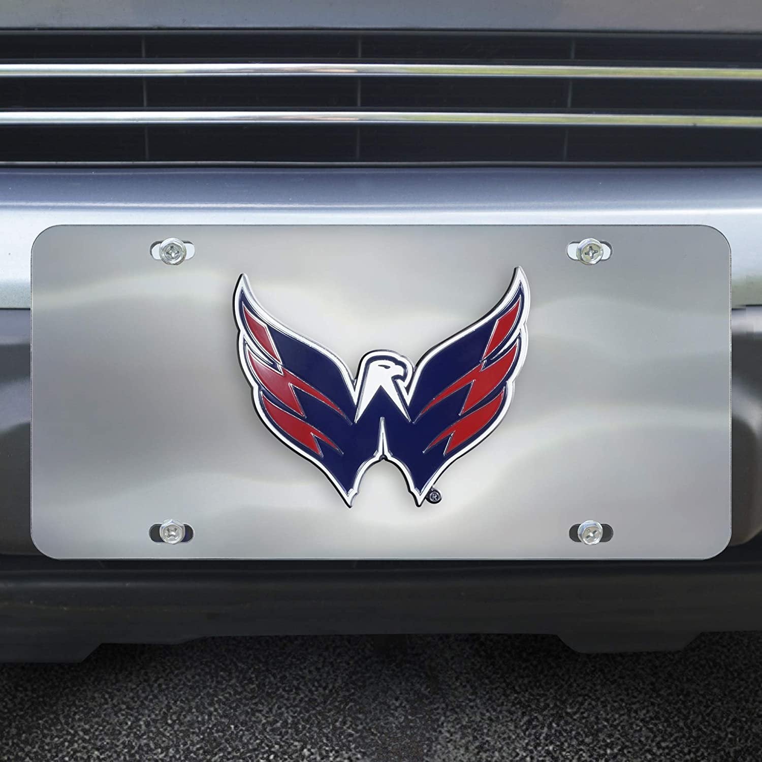 Washington Capitals License Plate Tag, Premium Stainless Steel Diecast, Chrome, Raised Solid Metal Color Emblem, 6x12 Inch