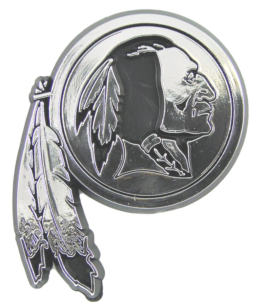 Washington Commanders Redskins Retro Logo Auto Emblem, Plastic Molded, Silver Chrome Color, Raised 3D Effect, Adhesive Backing, Officially Licensed